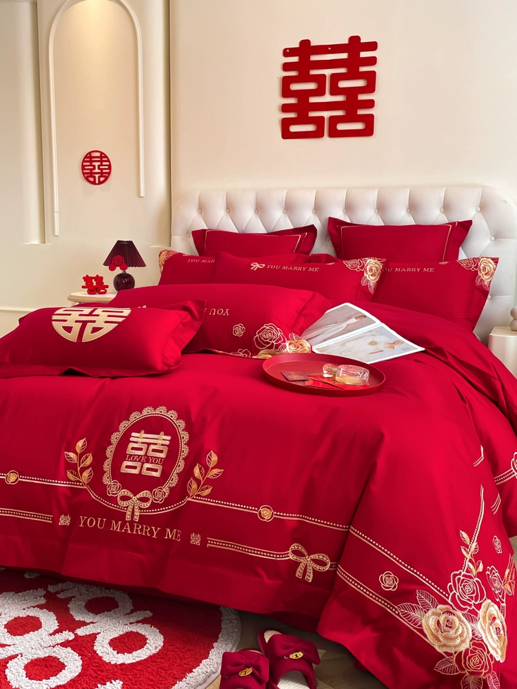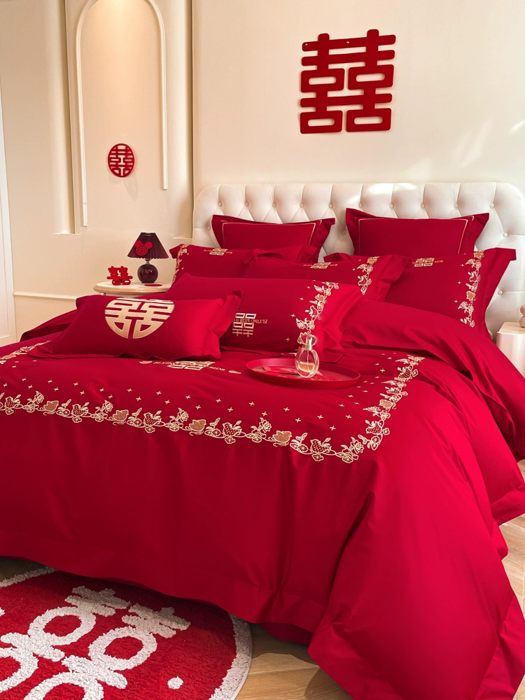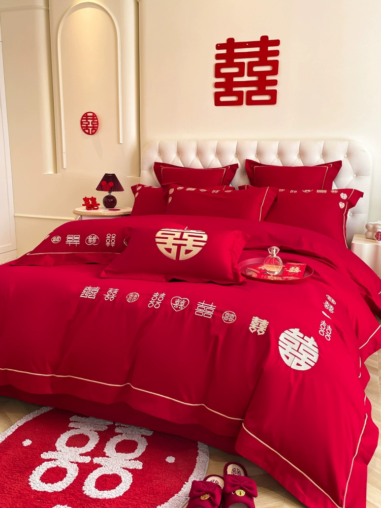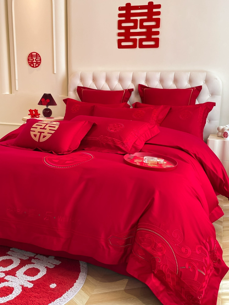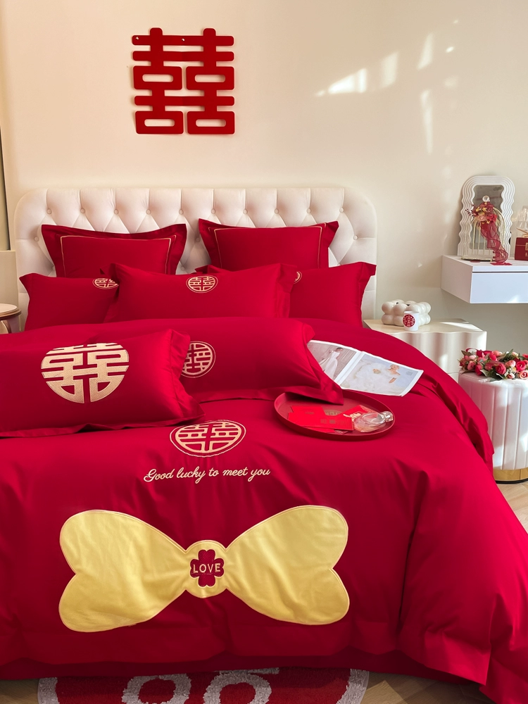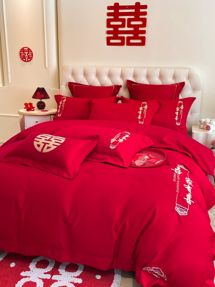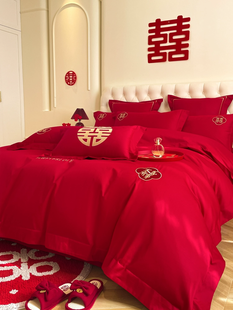 | nameOriginal | High-end festive bright red dragon and phoenix bed sheet set of four |