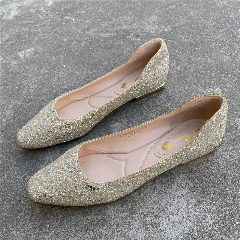 High-end flat sole Xiuhe wedding dress pumps for pregnant women