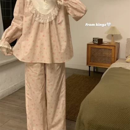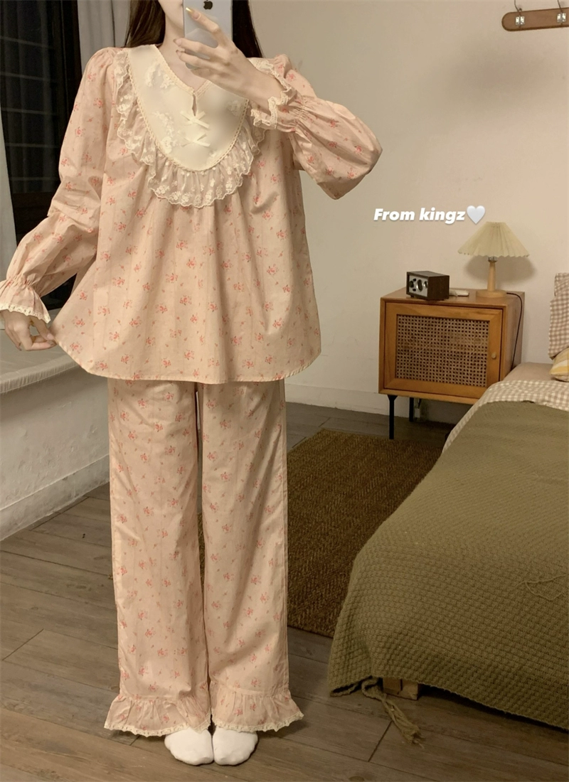 | nameOriginal | High-end floral pajamas for women spring and autumn 2024 new internet celebrity sweet lace trim home clothes plus size suit |