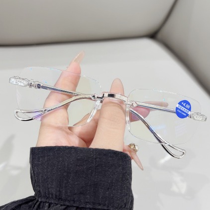 High-end frameless reading glasses men's ultra-light Fashion anti-blue light anti-radiation HD middle-aged aged old light presbyopia glasses women