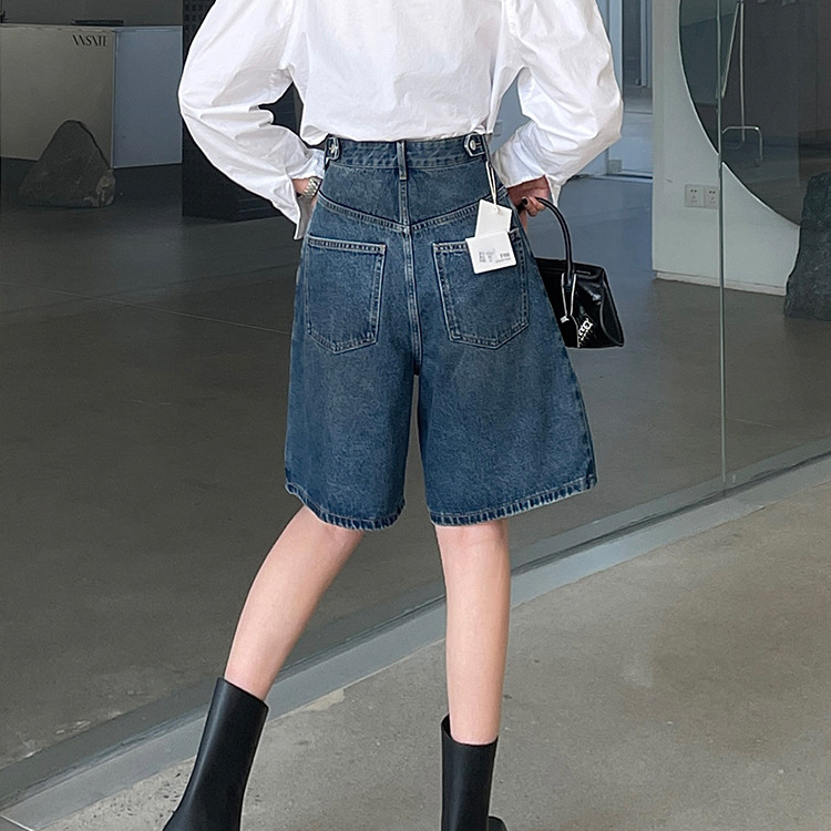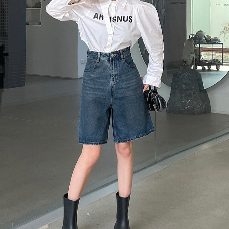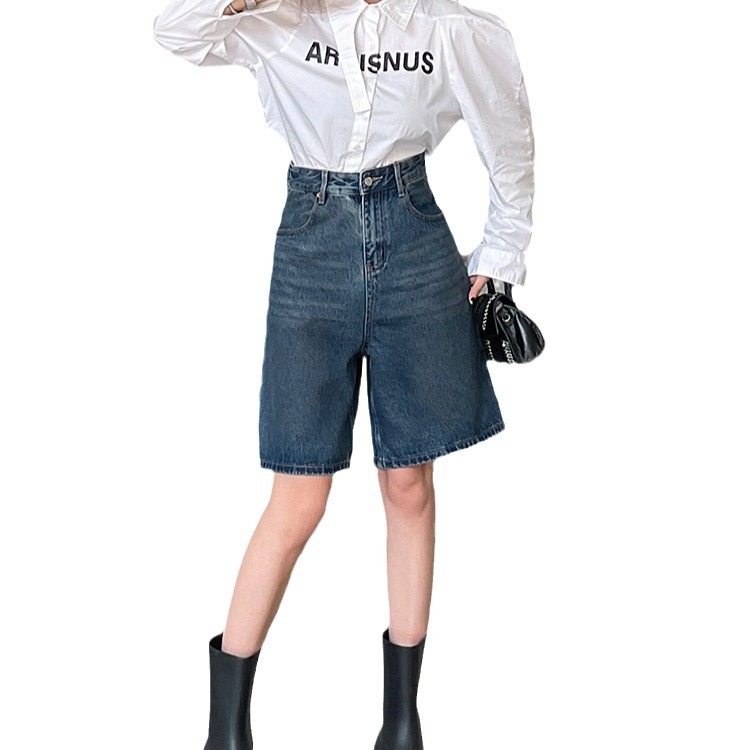 | nameOriginal | High-end French Denim pants women Spring 2024 New retro dark blue casual high waist wide legs five points jeans |