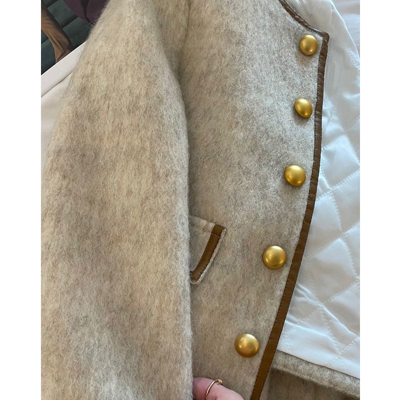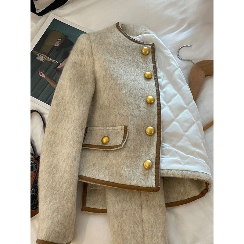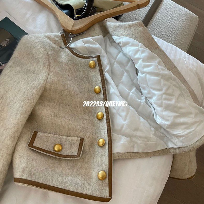 High-end French style gray Chanel style coat for women autumn and winter New style small versatile thickened cotton-padded short top