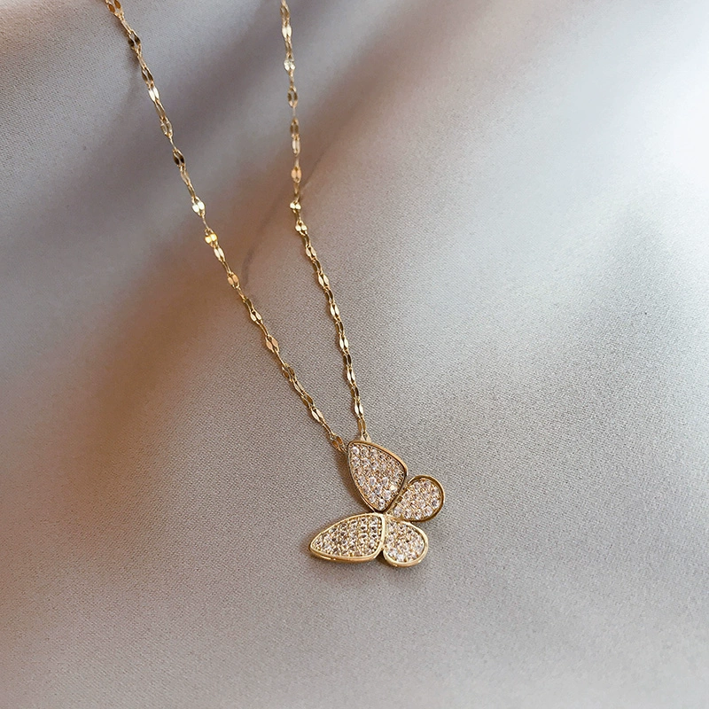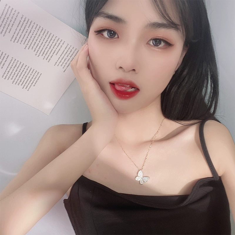 | nameOriginal | High-end full-diamond butterfly necklace for women, clavicle chain ins cold style jewelry, trendy Internet celebrity temperament, titanium steel does not fade |