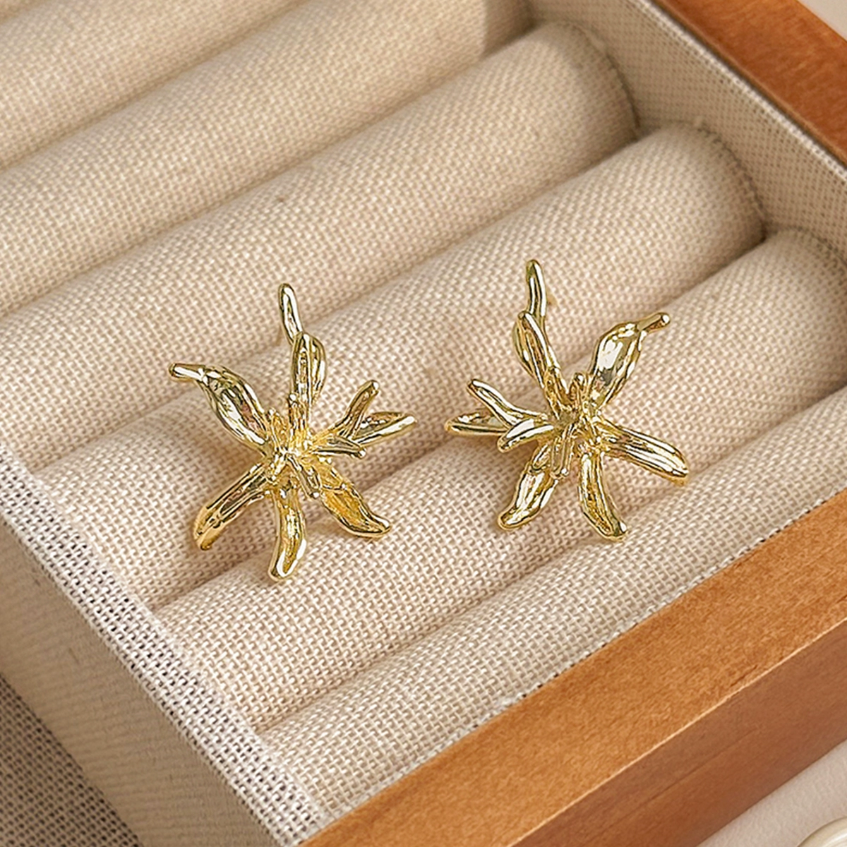 | nameOriginal | High-end golden irregular flower retro earrings French metal texture earrings niche design temperament earrings |