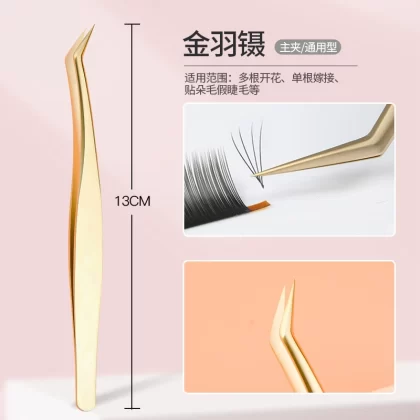 | nameOriginal | High-end grafted false eyelash tweezers for eyelash artists, novice blooming set, professional tools, anti-static gold feather clip |