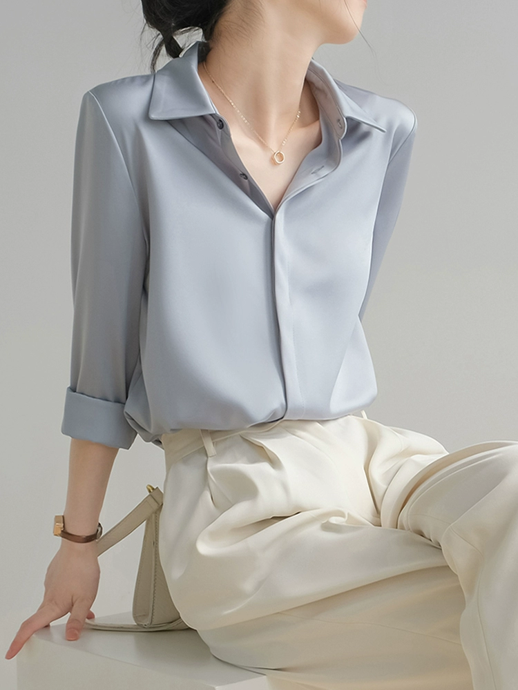 | nameOriginal | High-end gray blue retro drape professional long-sleeved satin |
