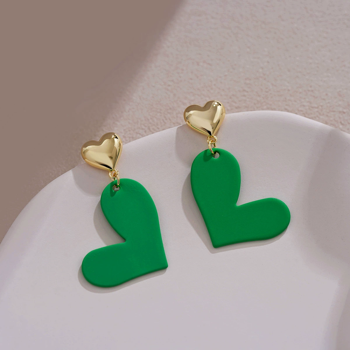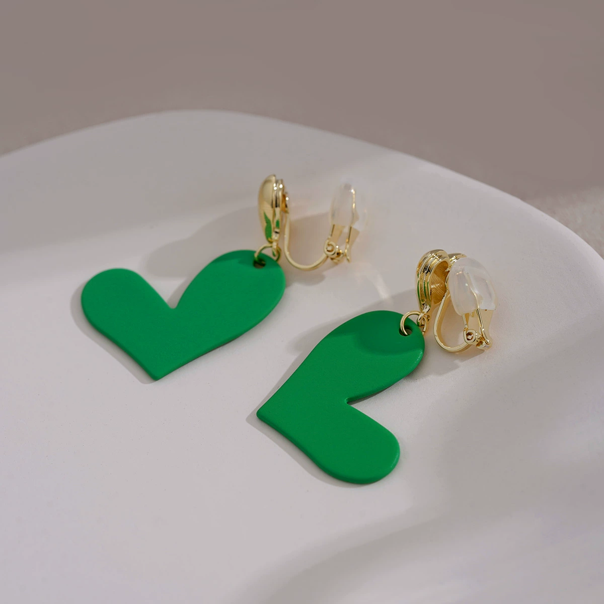 High-end green peach heart earrings, special design, tea style unique earrings, face-changing, niche ear clips, new trendy style