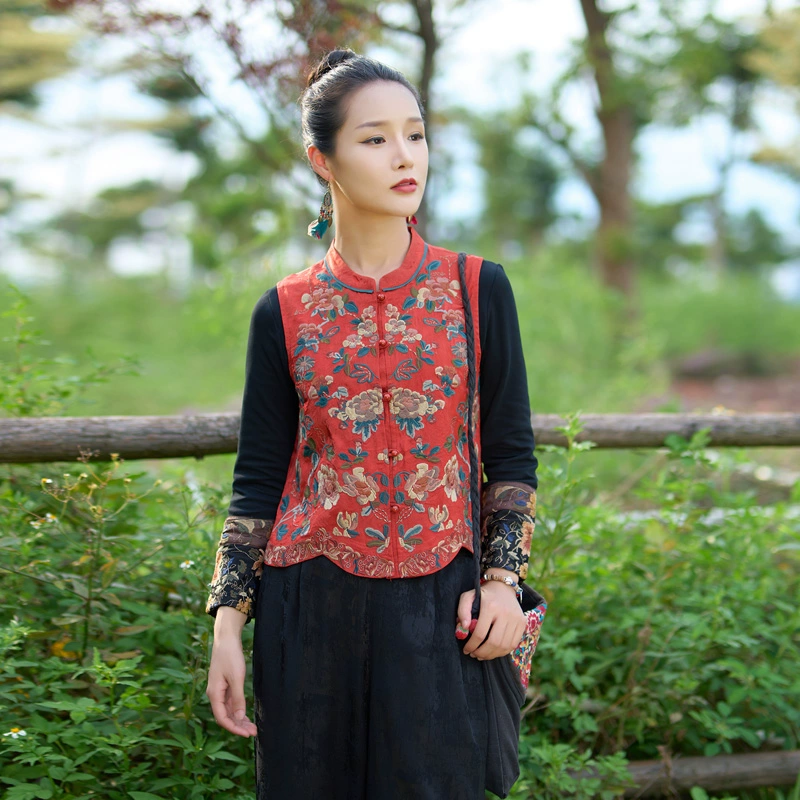 High-end heavy-duty embroidered sleeveless retro vest