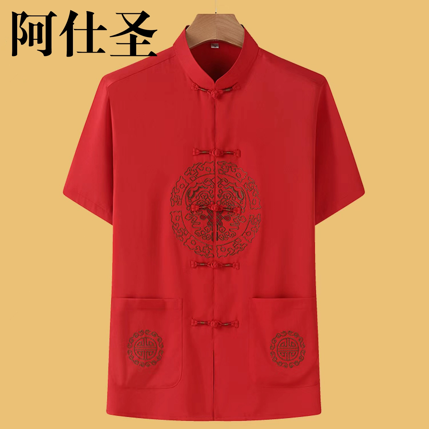 | nameOriginal | High-end ice silk top, cool and loose, bright red Tang suit |
