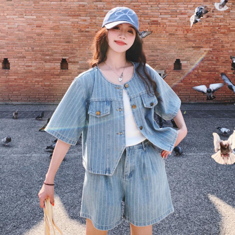 High-end Jacquard Denim suit Women’s Summer 2024 New Explosions Fried Street Age-reducing Fashion Western-style Two-piece Set Niche