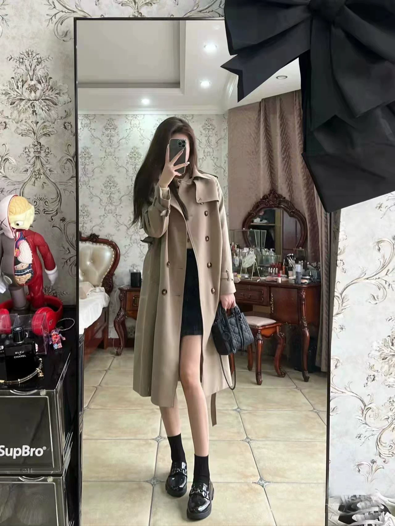 | nameOriginal | High-end khaki spring and autumn mid-length windbreaker jacket |