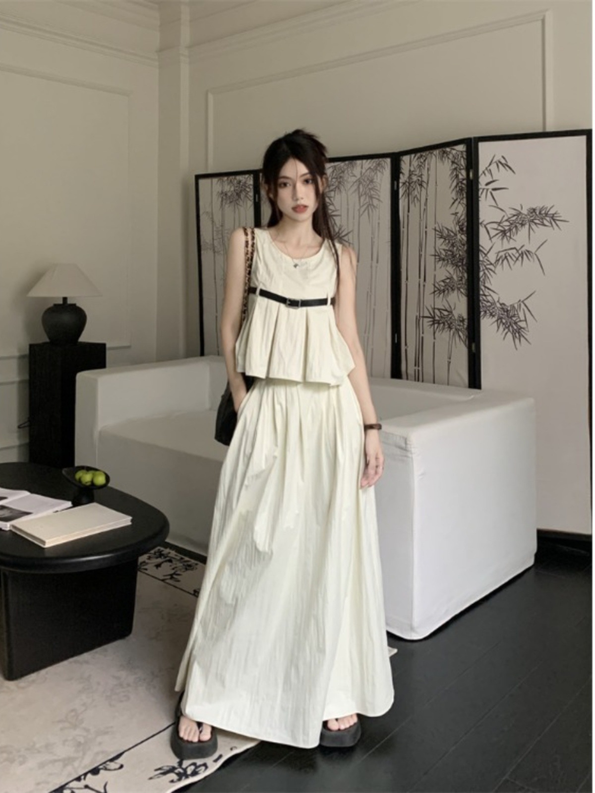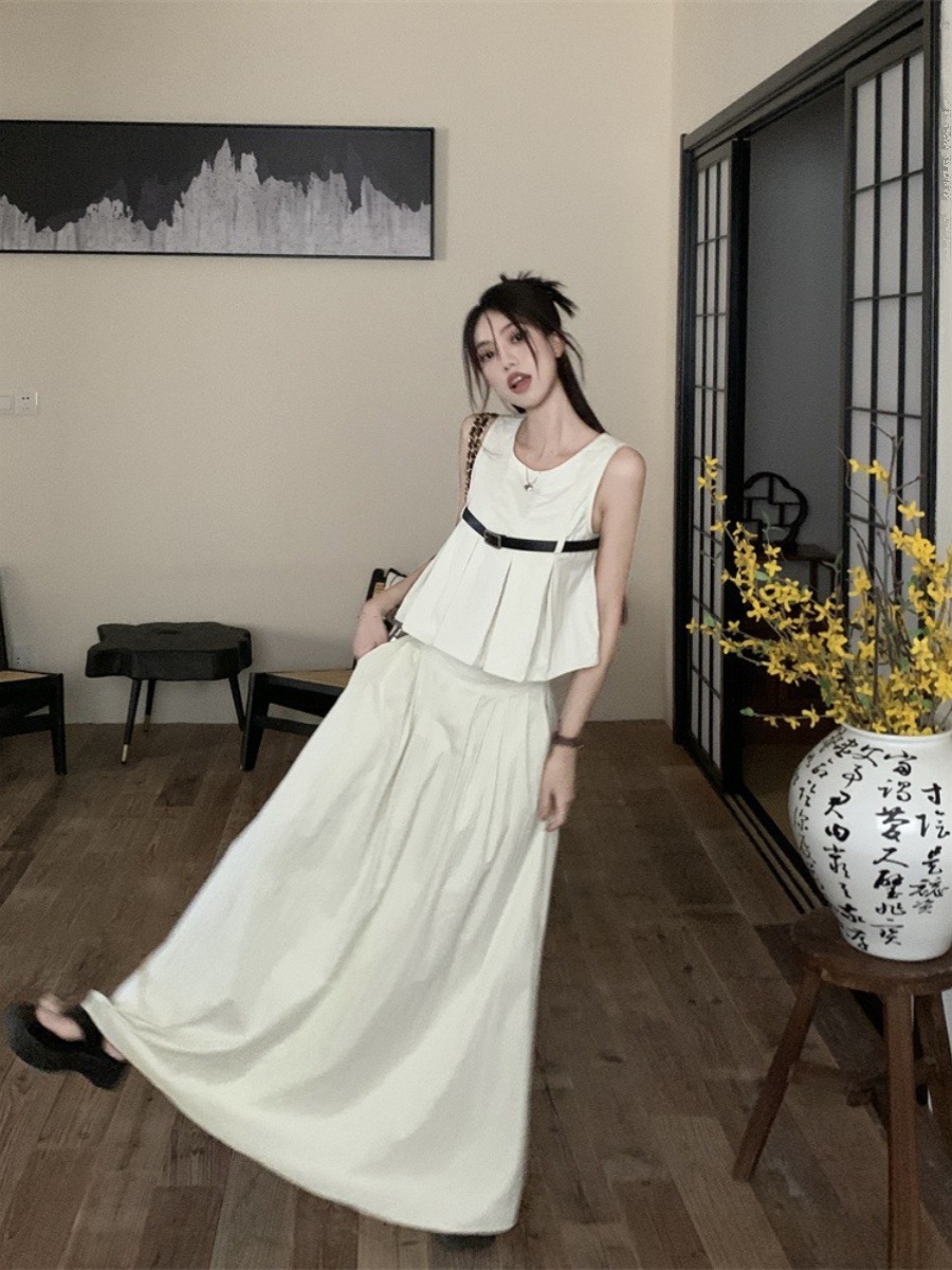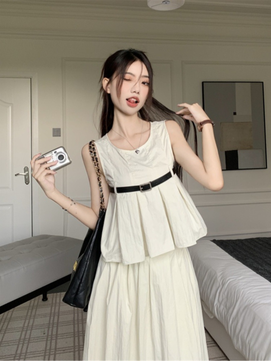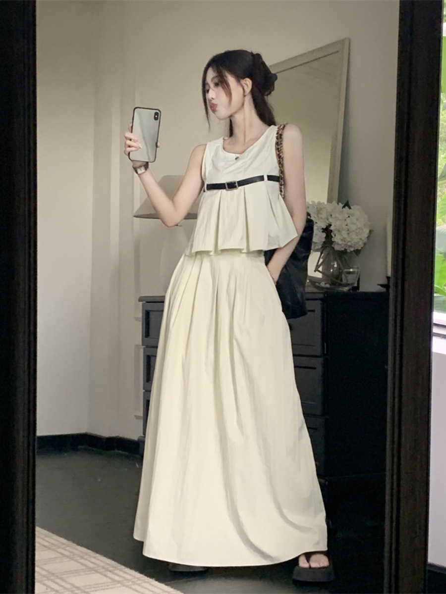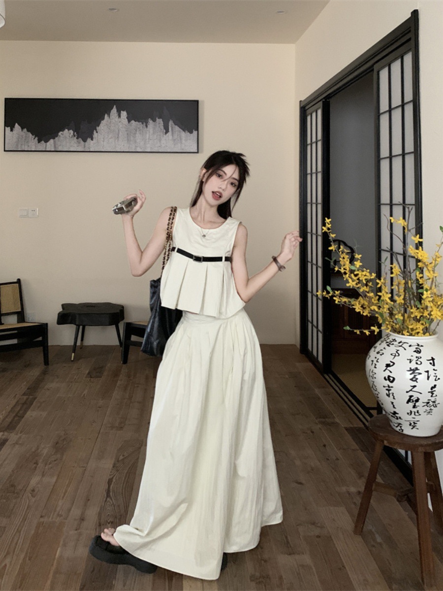 High-end Korean-style Fashion Western-style Suit Women’s Summer 2024 New Sleeveless Top Pleated Skirt Two-piece Set