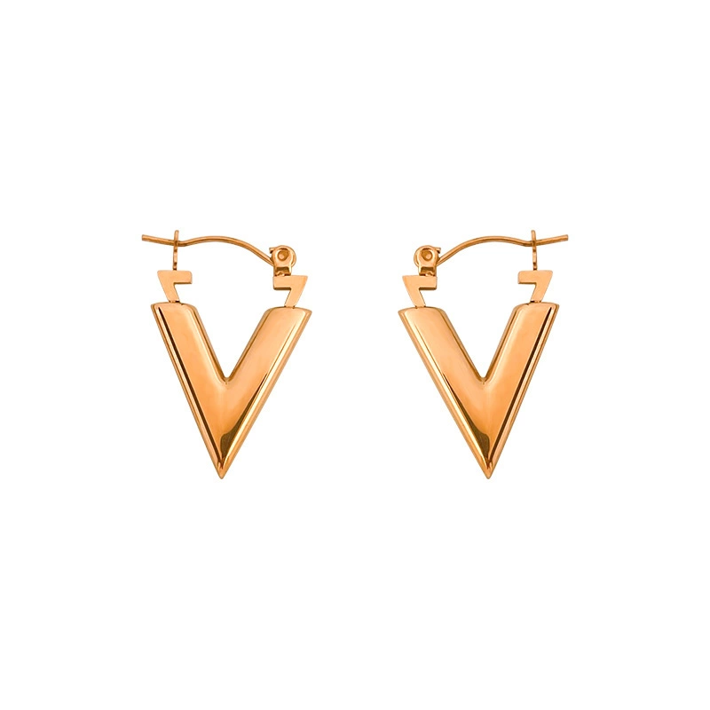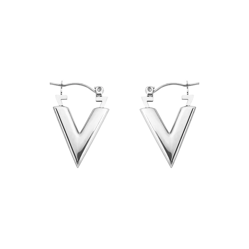 | nameOriginal | High-end letter V earrings, light luxury, simple metal feeling, exaggerated European and American niche earrings, female anti-falling earrings anchor |