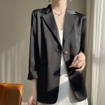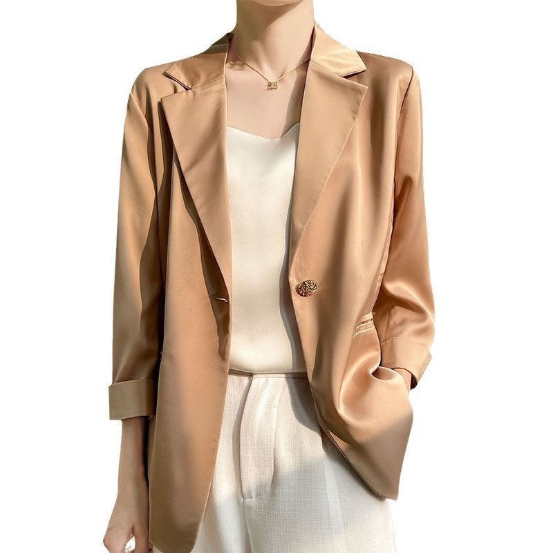 High-end Light Luxury Acetic Acid Satin Seven-sleeve Suit Jacket Women’s 2024 Spring and Summer New Draped Loose Suit Top
