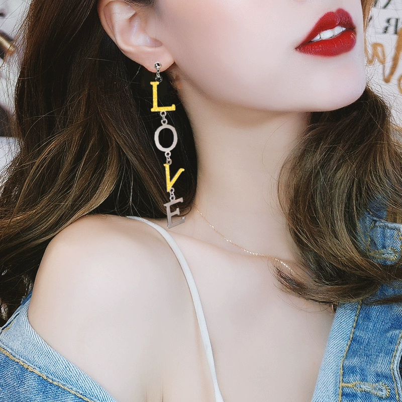 | nameOriginal | High-end love bouncy letter earrings long style Korean women 2024 new trendy internet celebrity casual style earrings |