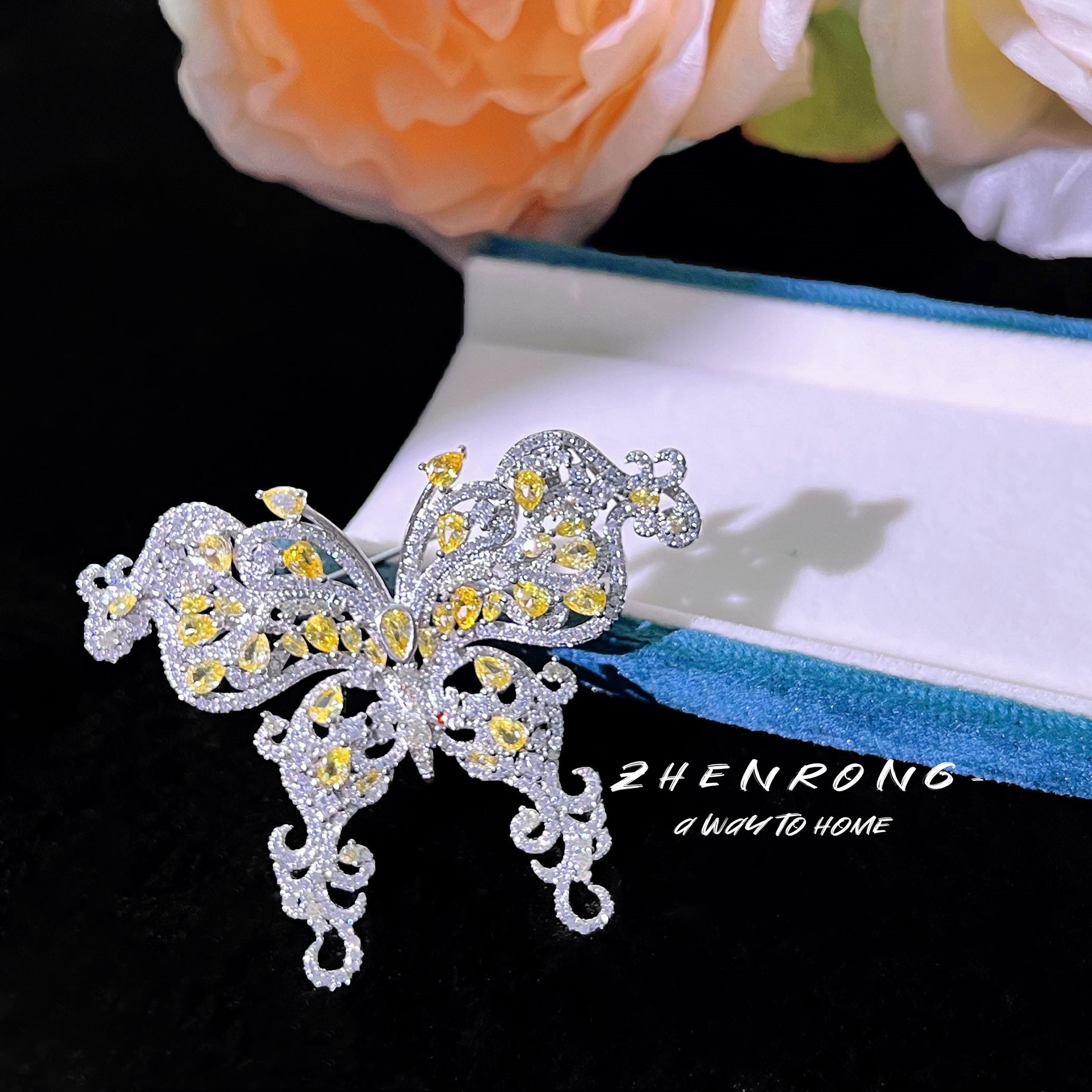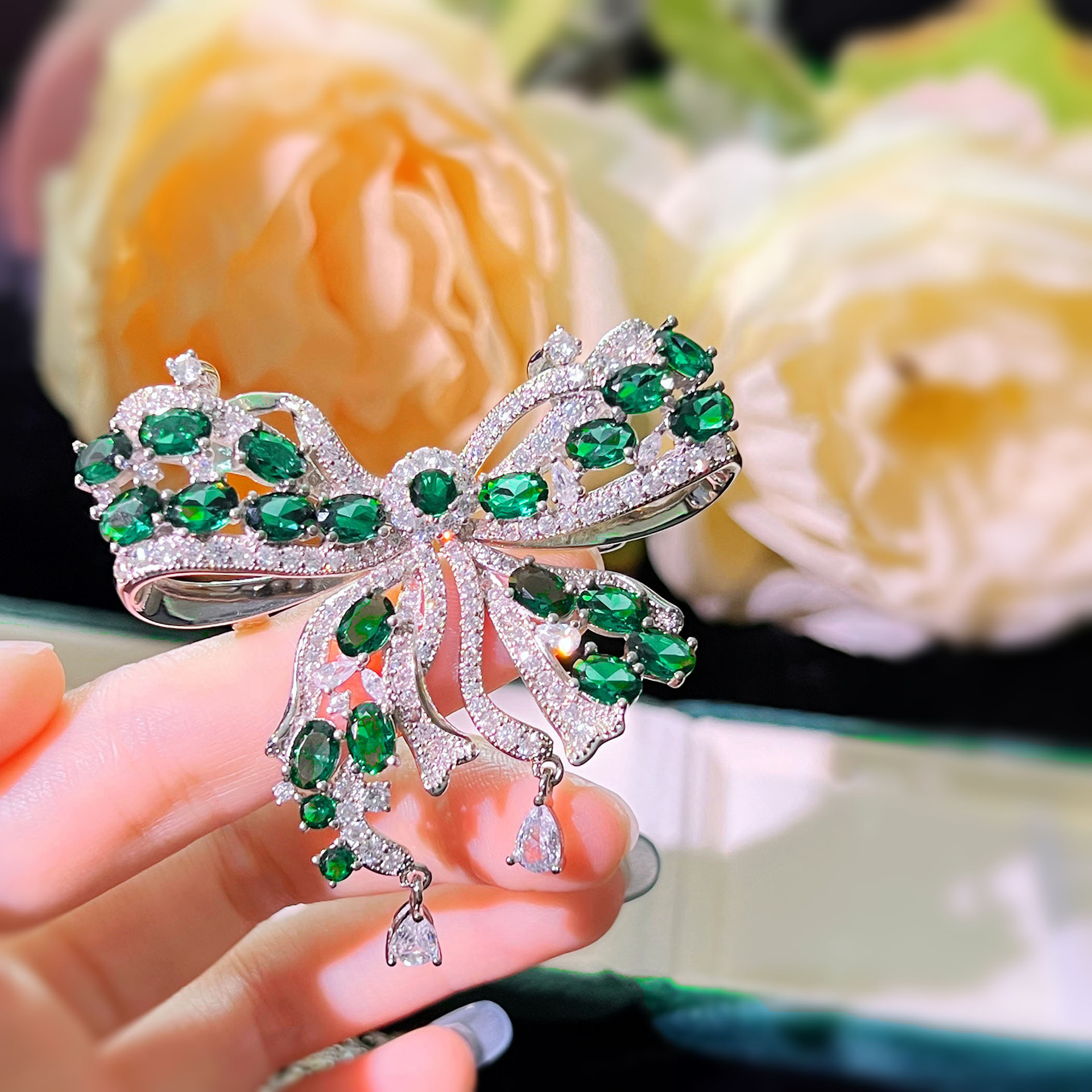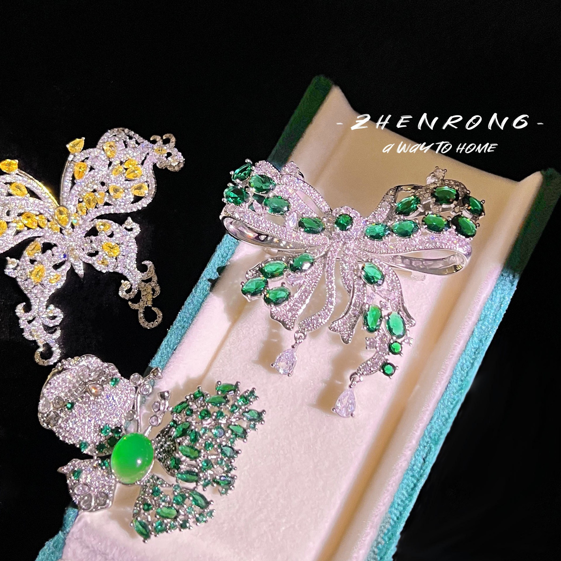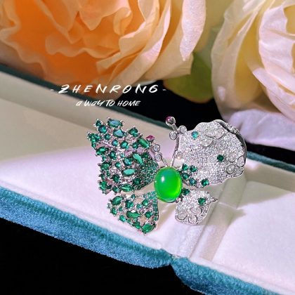 | nameOriginal | High-end luxury heavy industry full diamond brooch two-piece necklace emerald butterfly ring Palace style high carbon diamond color treasure female |