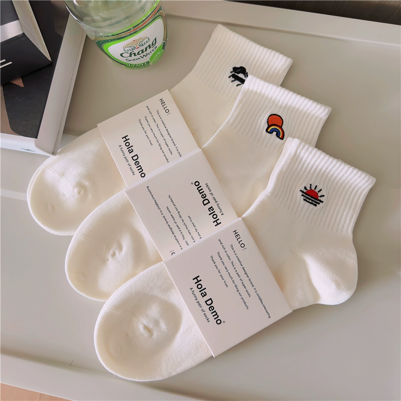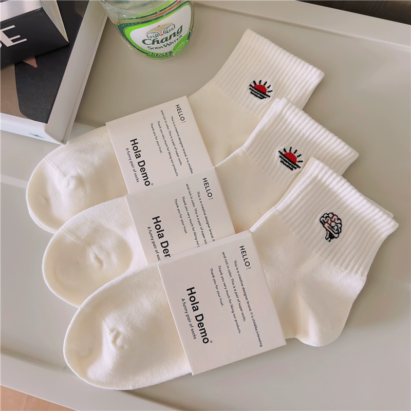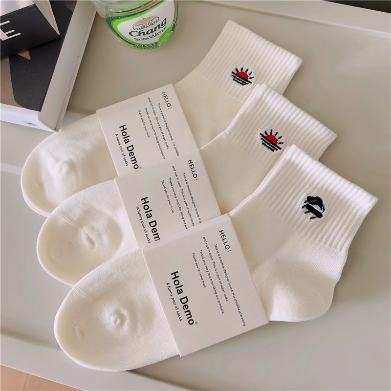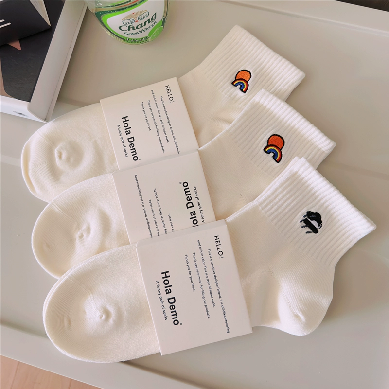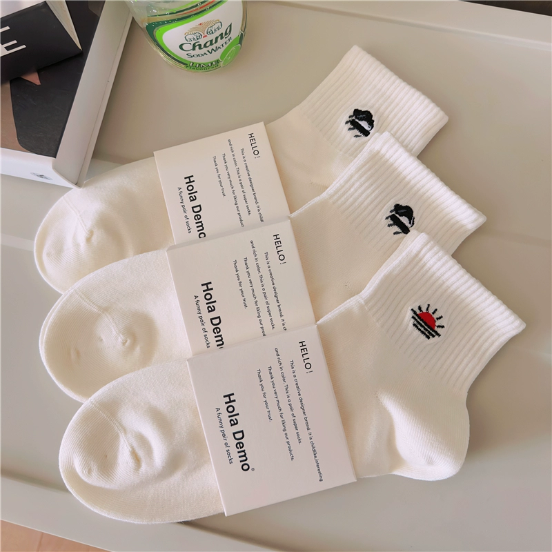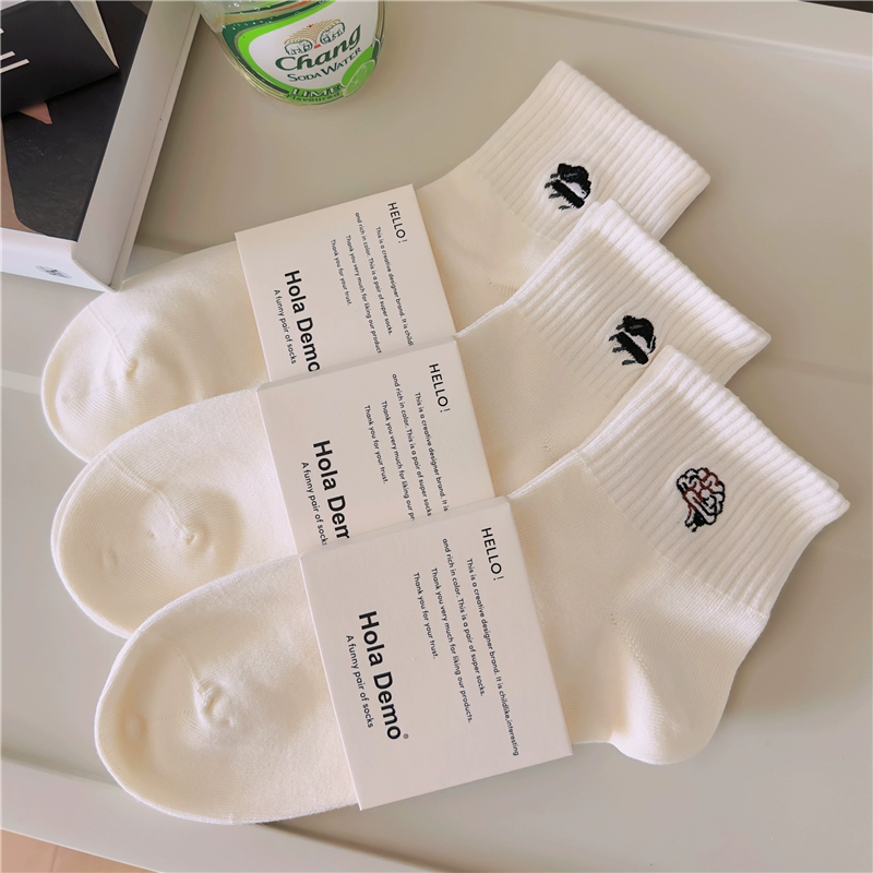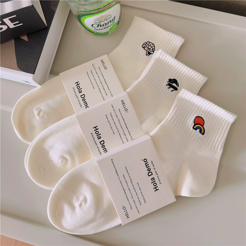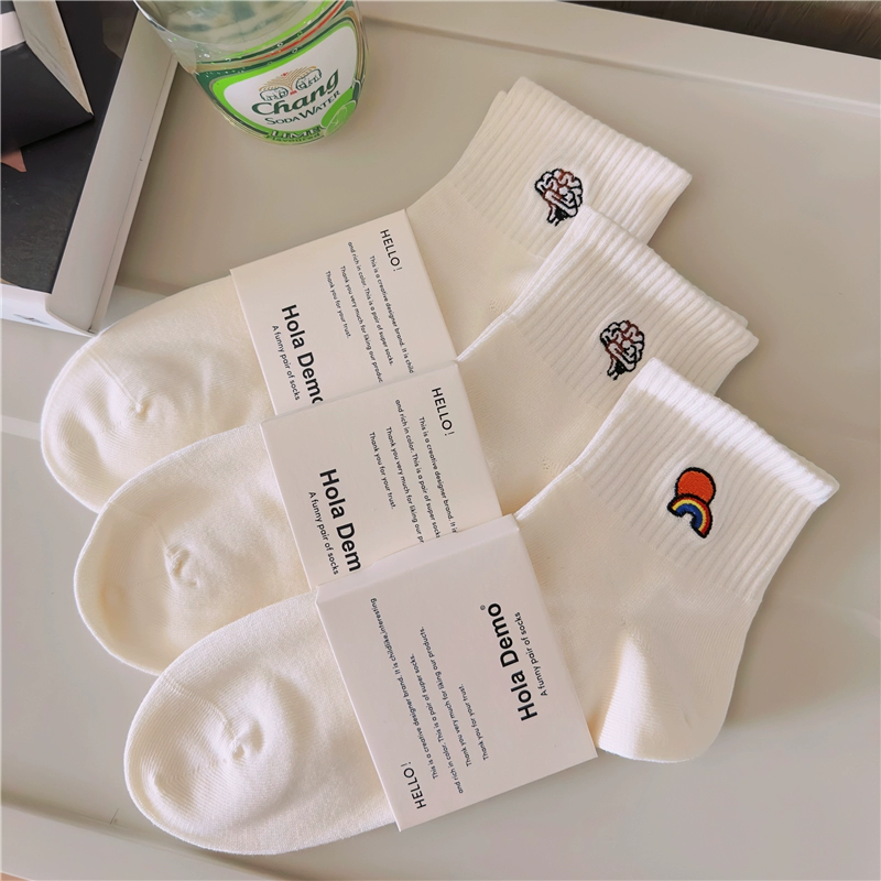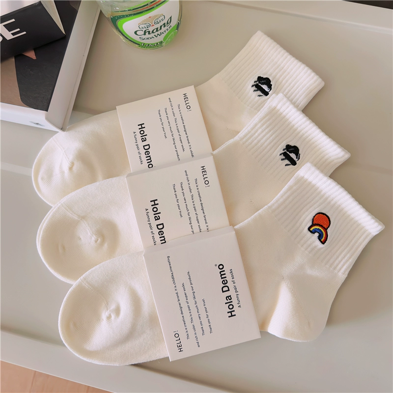 High-end men’s socks for men and women INS socks solid color cotton socks white thin breathable and odor-proof couple’s mid-tube socks