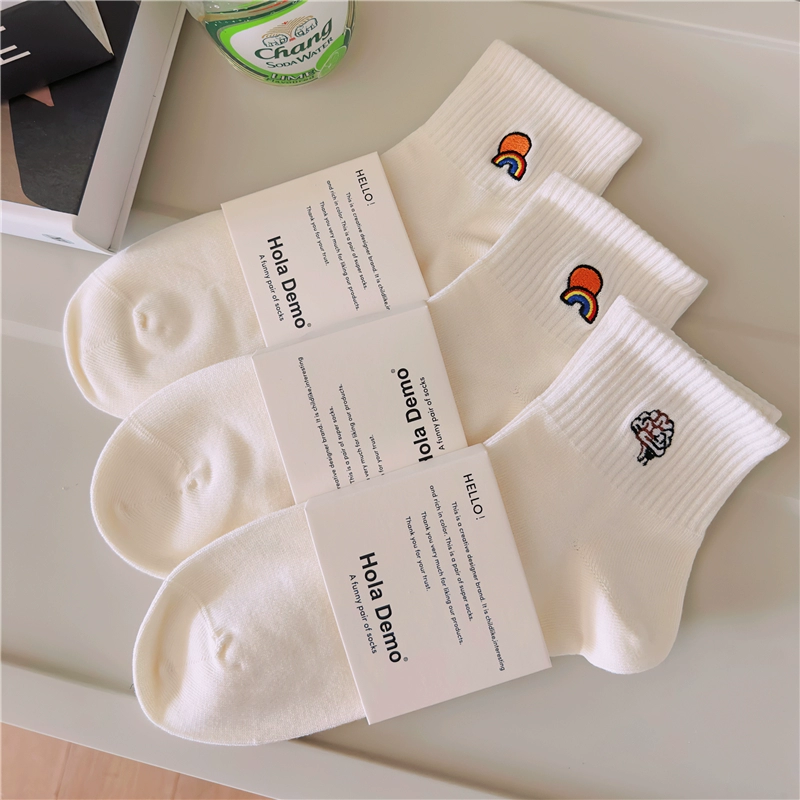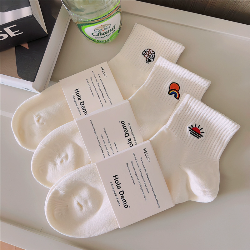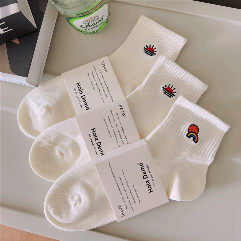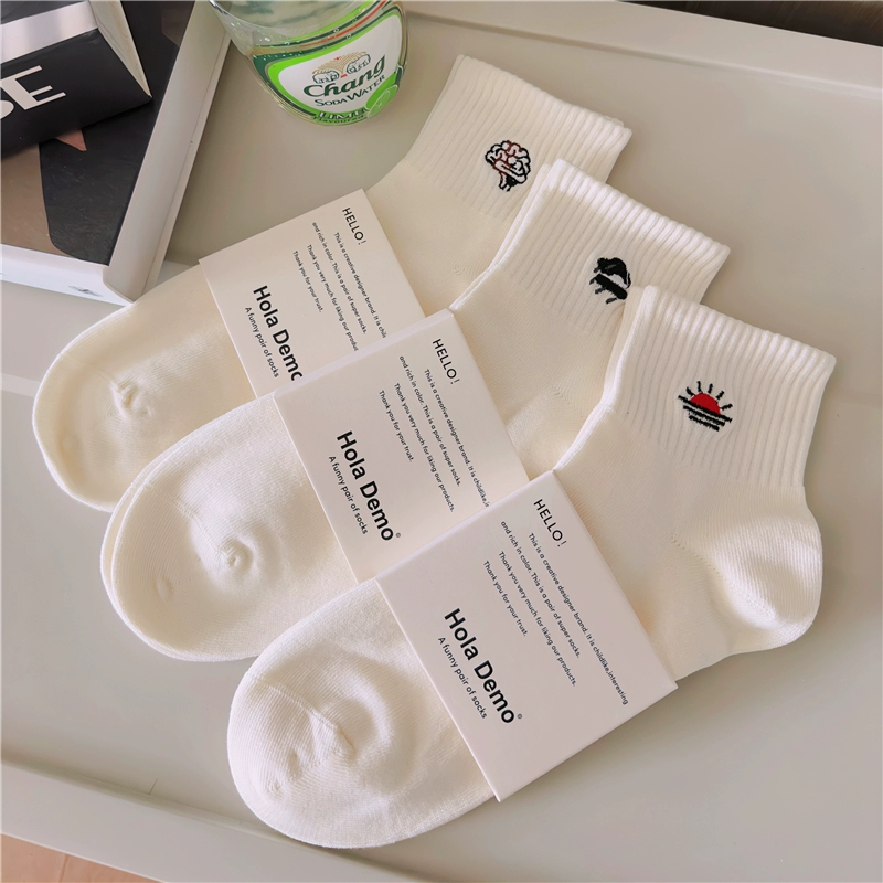High-end men's socks, boys and girls INS socks, solid color cotton socks, white thin breathable and deodorant couples mid-calf socks