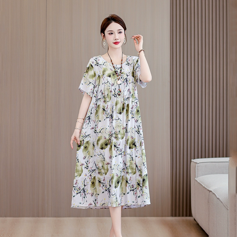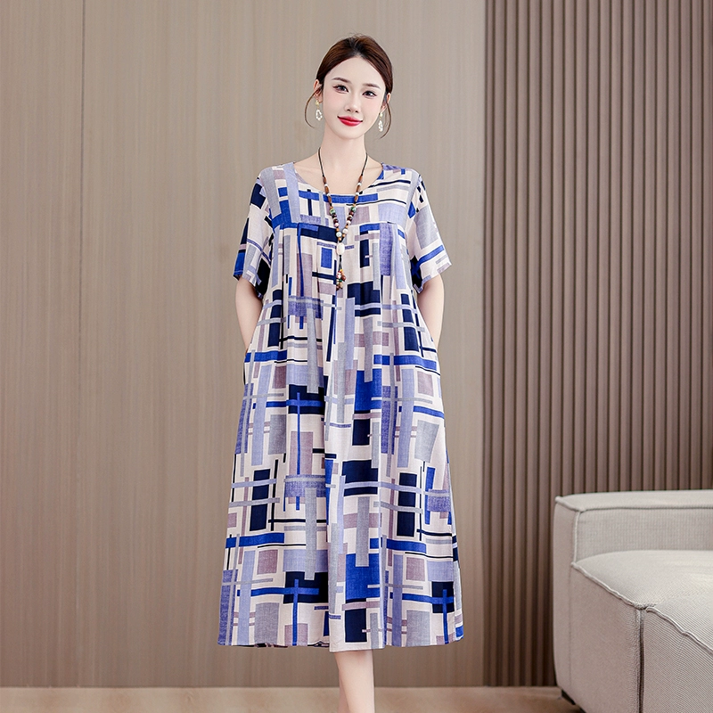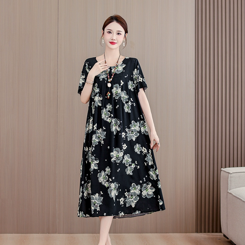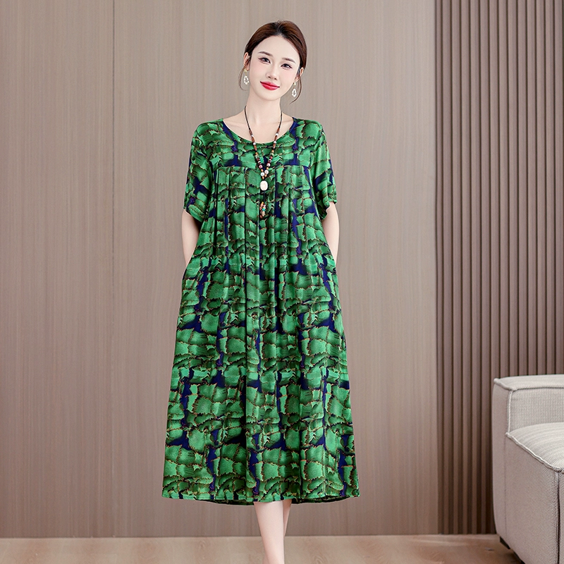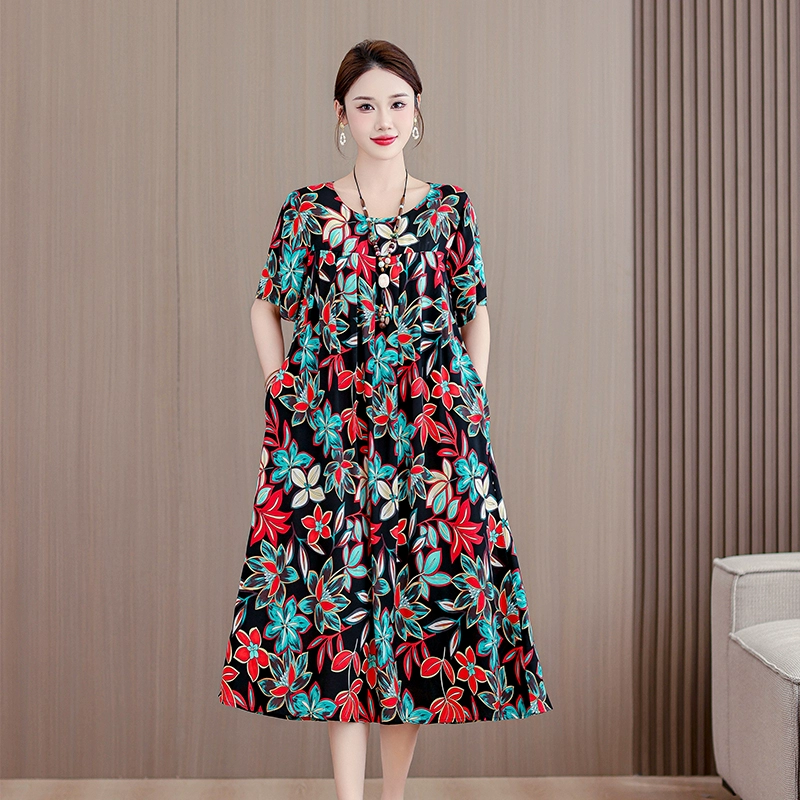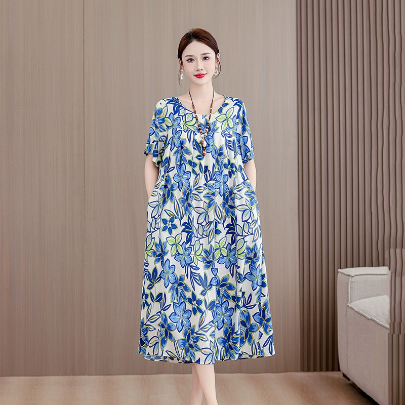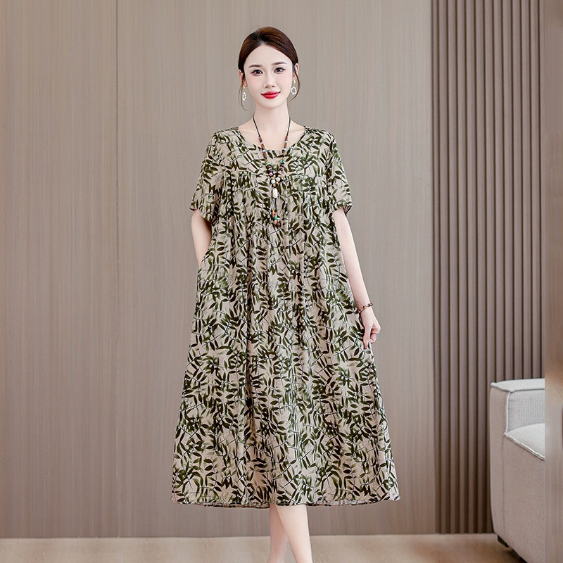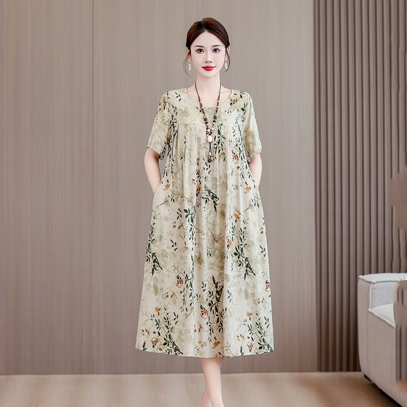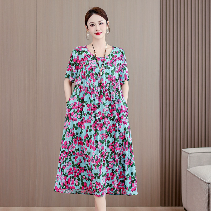 | nameOriginal | High-end middle-aged and elderly cotton silk dress summer short-sleeved 200 pounds fat mom fashion new skirt temperament wear outside |