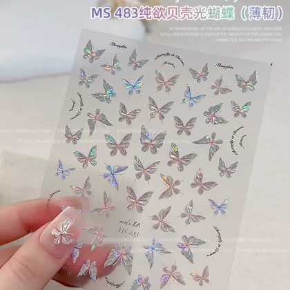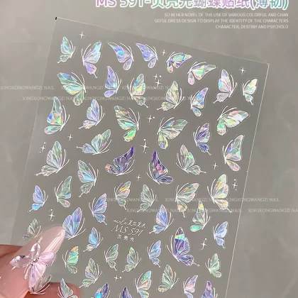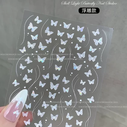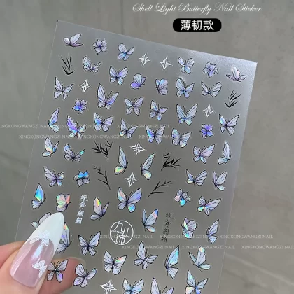 nameOriginal | High-end nail art fantasy shell light butterfly sticker 2024 new style super fairy pure desire style diy jewelry with adhesive backing |