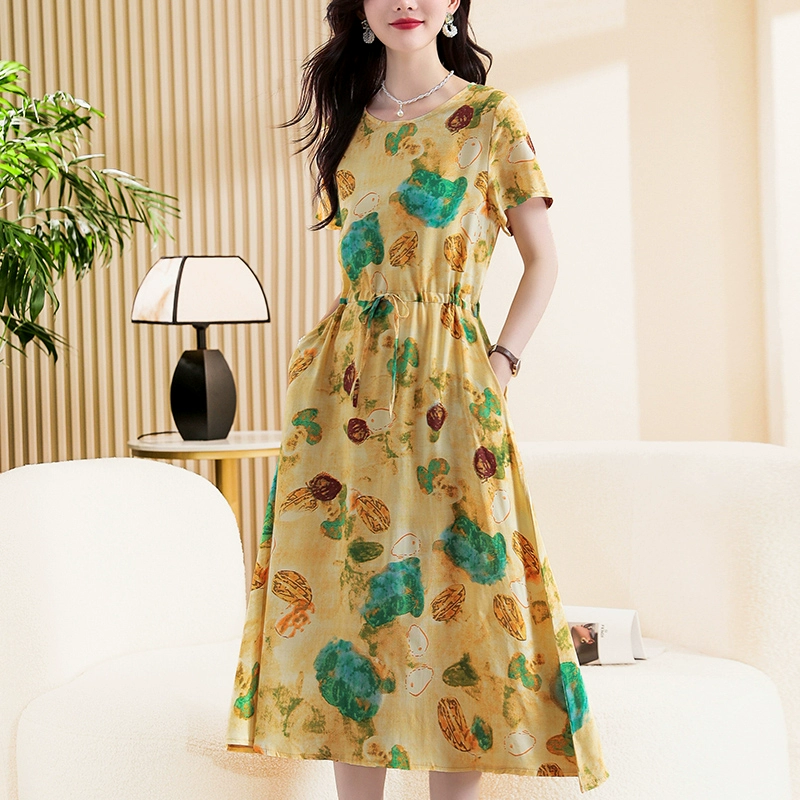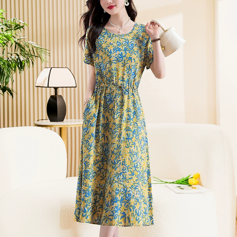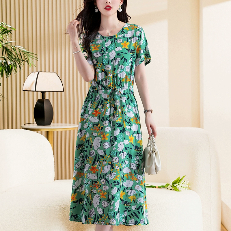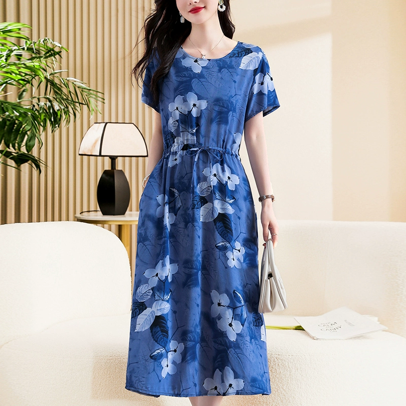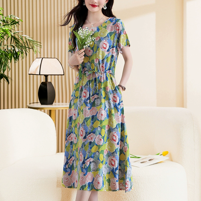 | nameOriginal | High-end new middle-aged and elderly cotton silk dress summer young style middle-aged mother floral long skirt temperament wear |