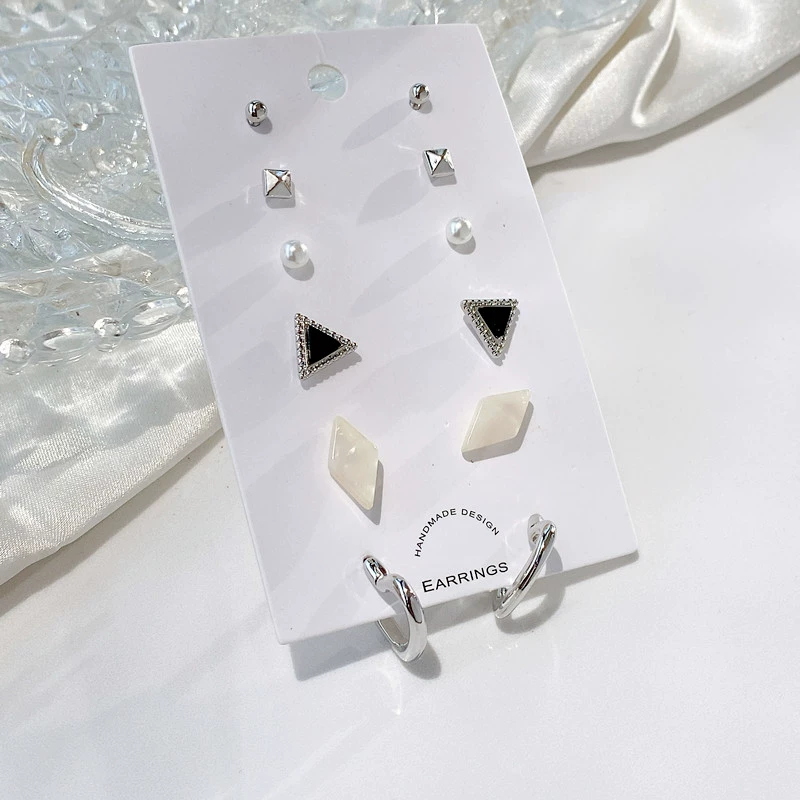 High-end niche simple row of nails original single golden women's retro Hong Kong style earrings fashionable earrings set