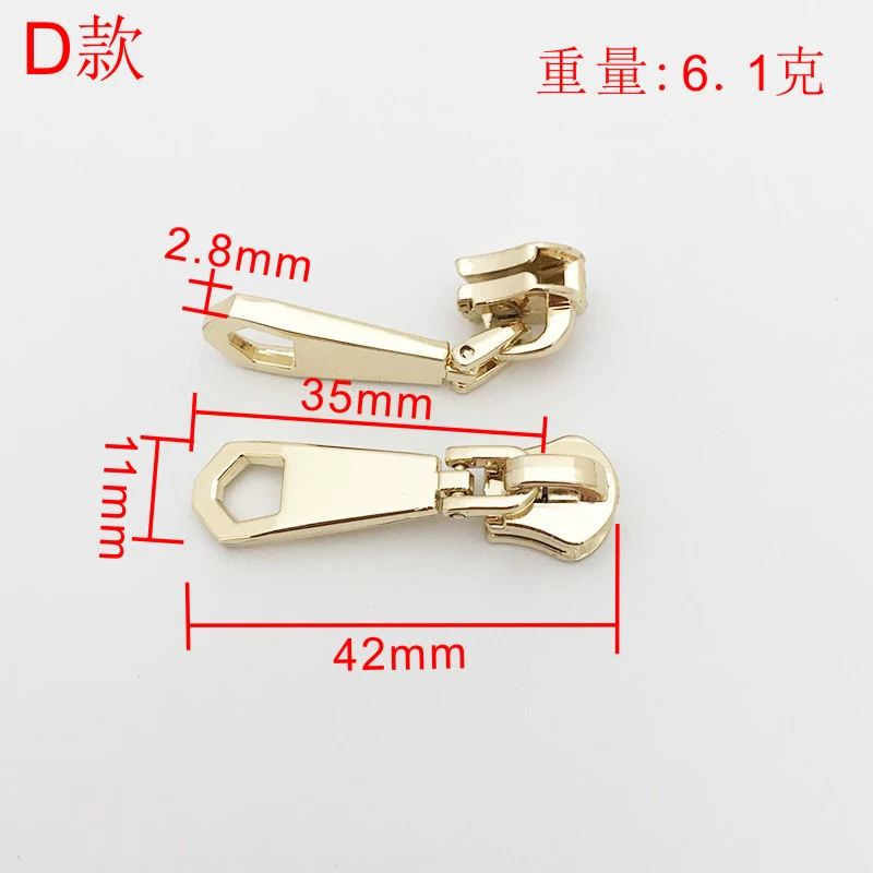 | nameOriginal | High-end No. 5 metal zipper zipper for bag and bag zipper accessories, zipper head, light gold movable pull tab, detachable |