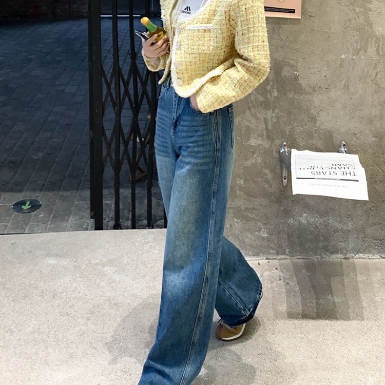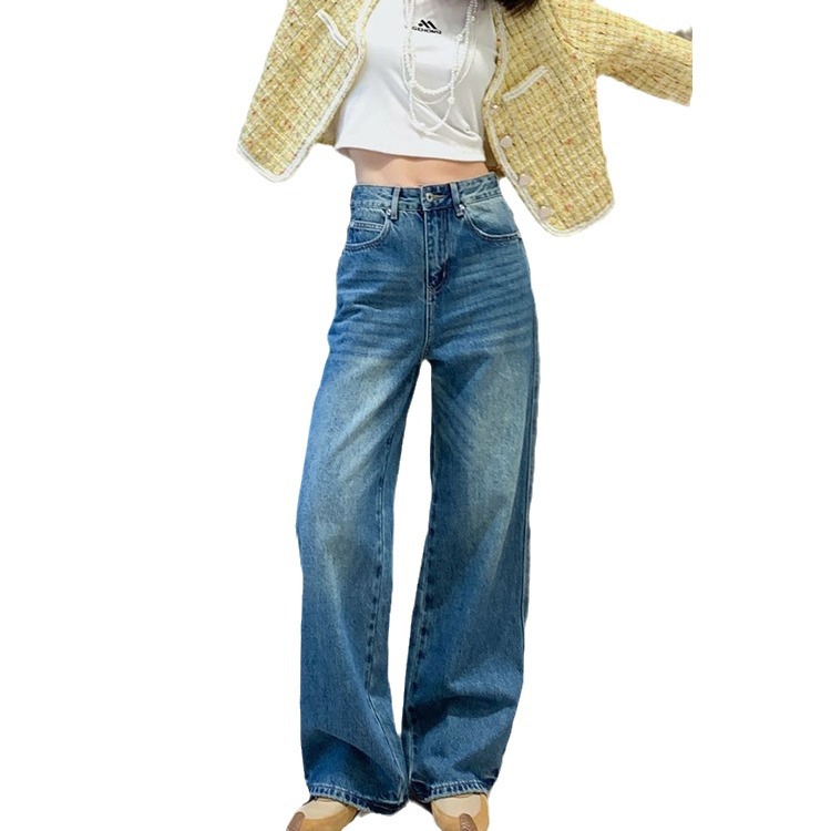 | nameOriginal | High-end original Denim pants for girls 2024 spring new multiple washing craft loose straight pants wide leg pants |