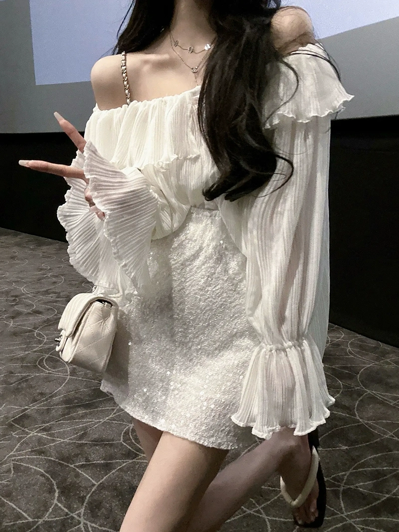 | nameOriginal | High-end pleated ruffle women's summer sequined top |