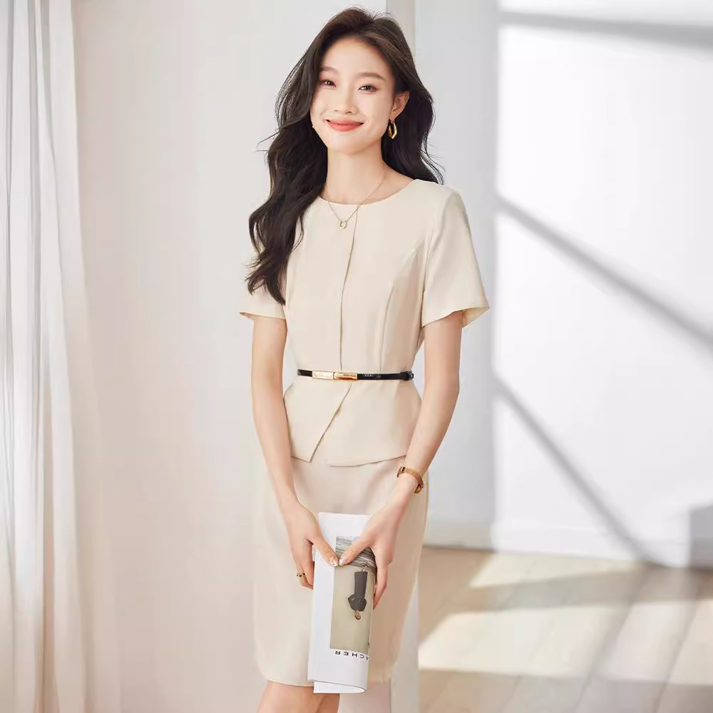 High-end Professional Dress Summer Temperament Goddess Fan Beauty Salon Jewelry Store Front Desk Reception Work Clothes Set