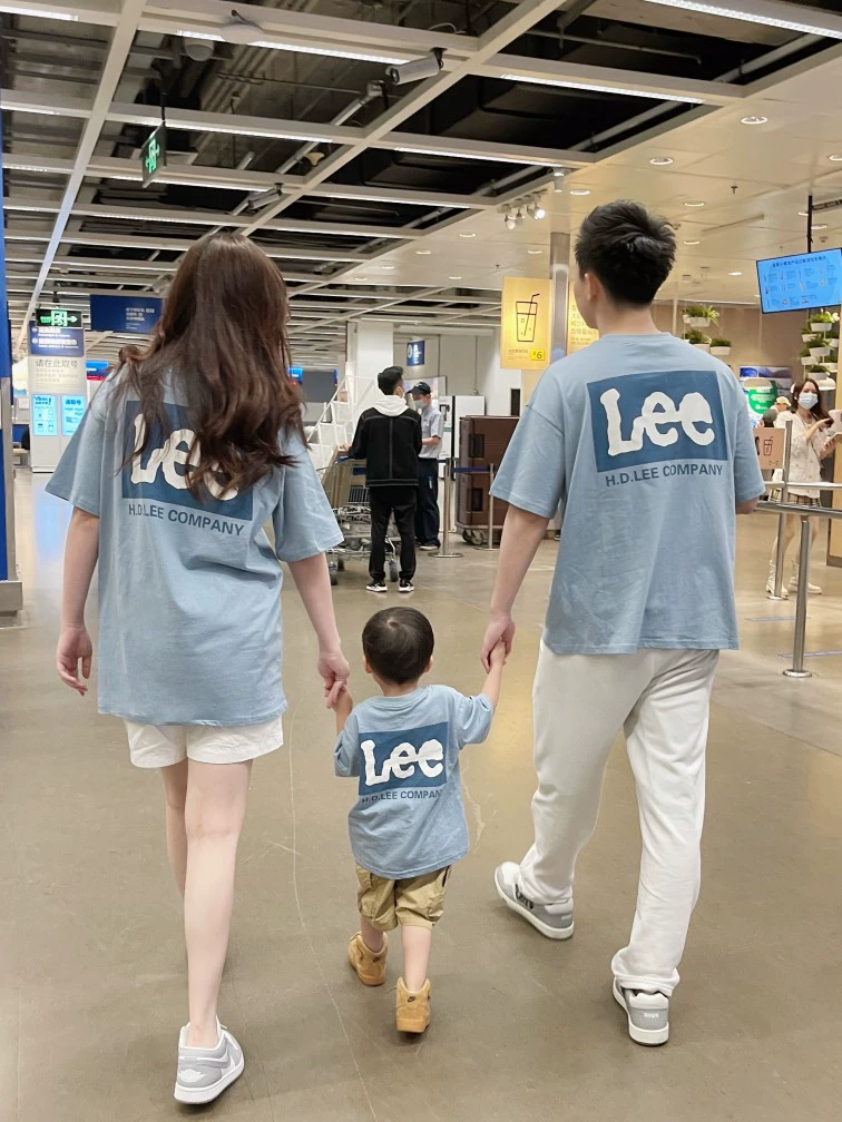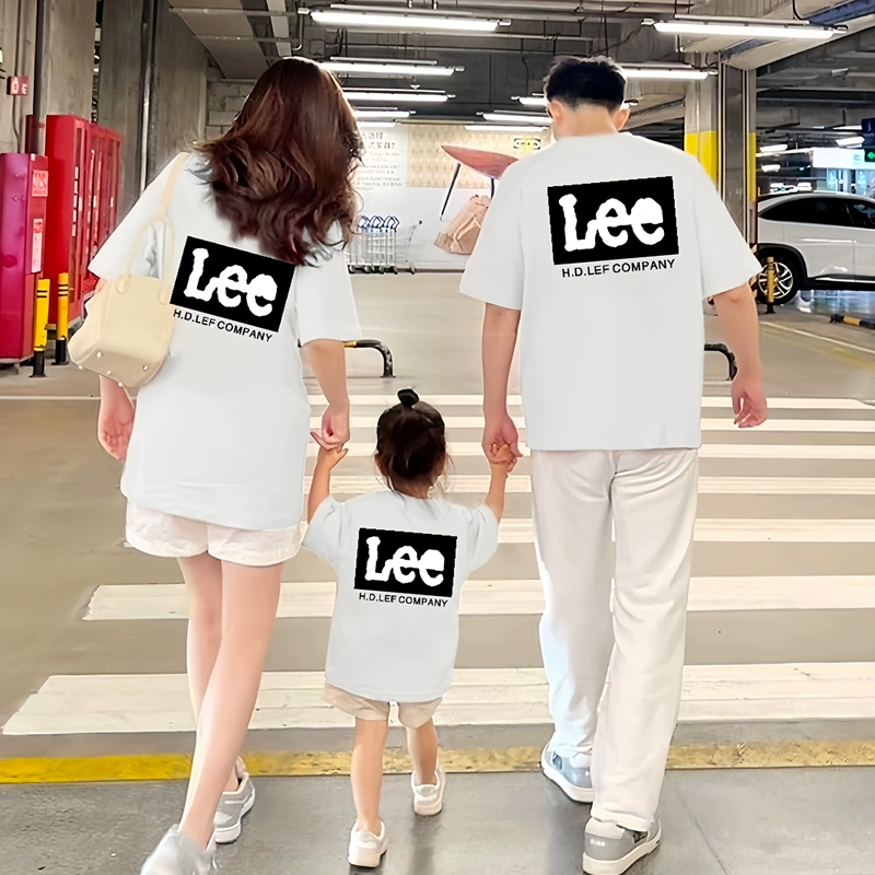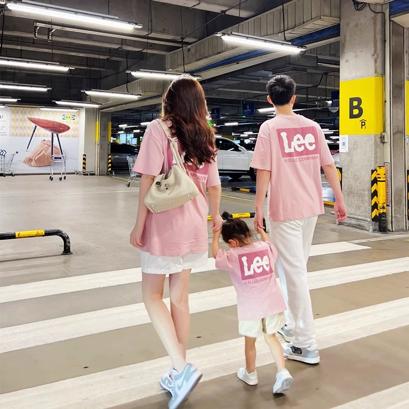 High-end pure cotton summer short-sleeved parent-child clothing for a family of three