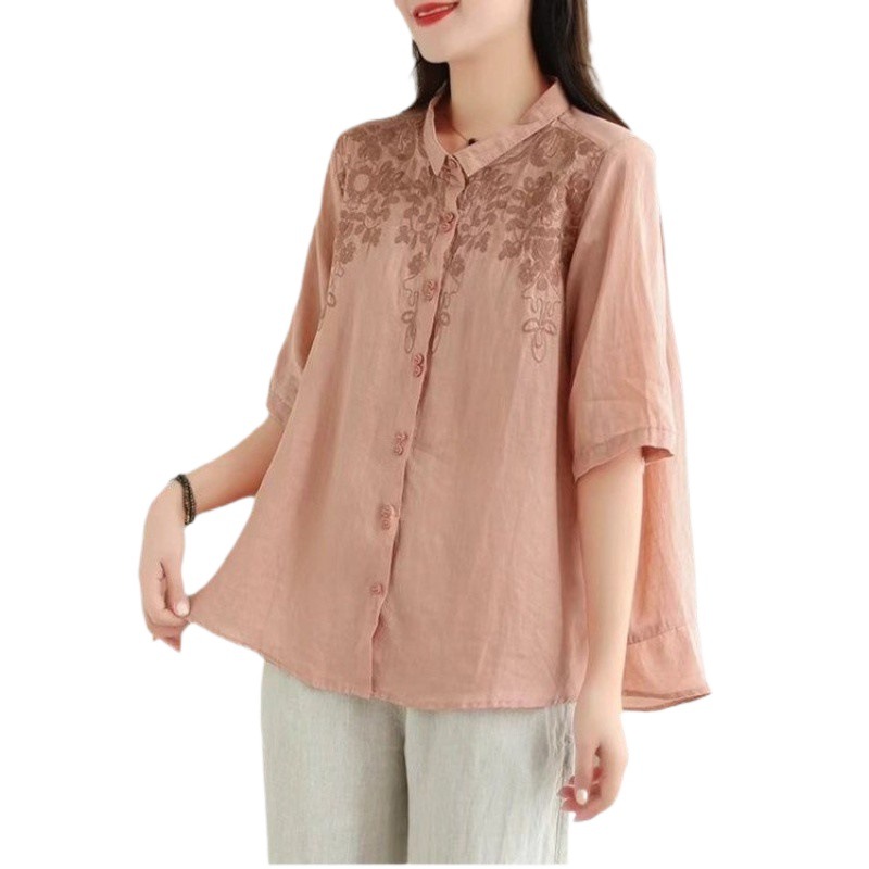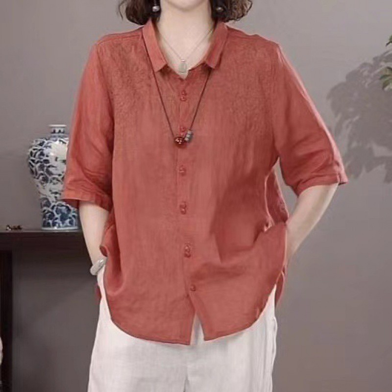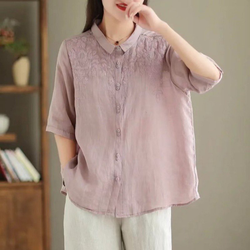 | nameOriginal | High-end Ramie Fashion Polo Shirt Women's 2024 Summer Mother's Western Style Thin Linen Top Cotton Linen Small Shirt |