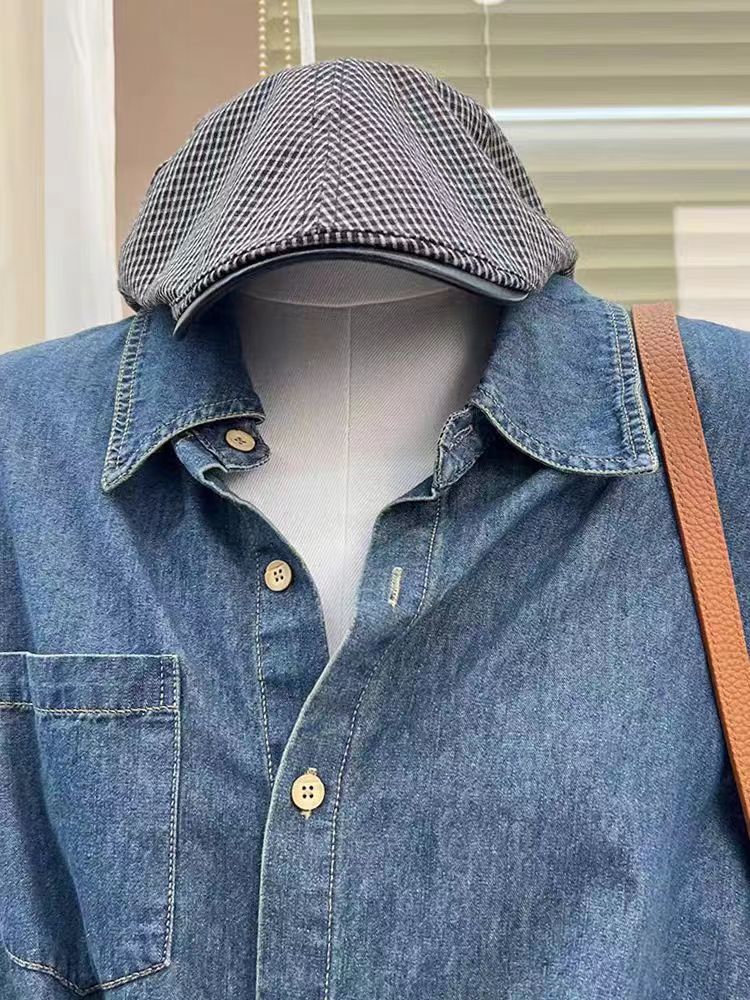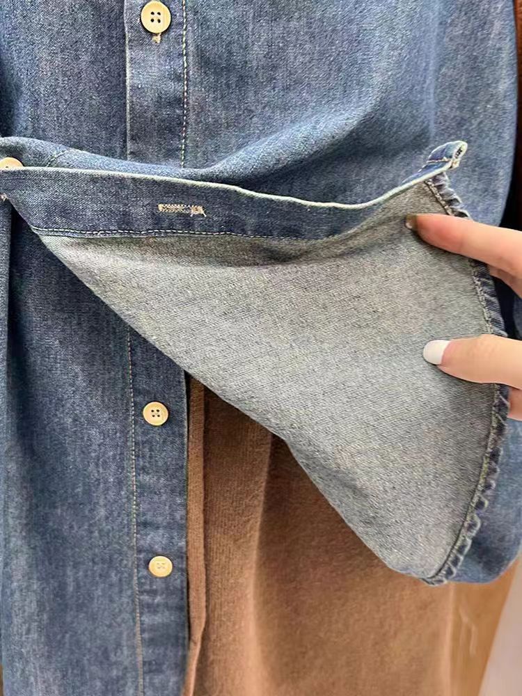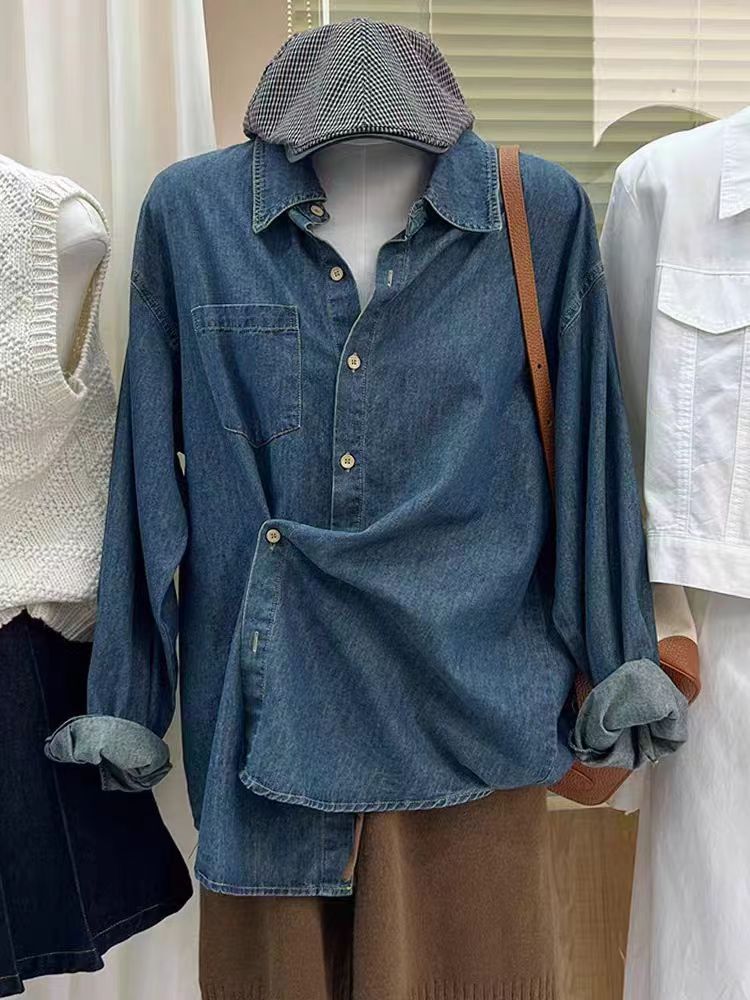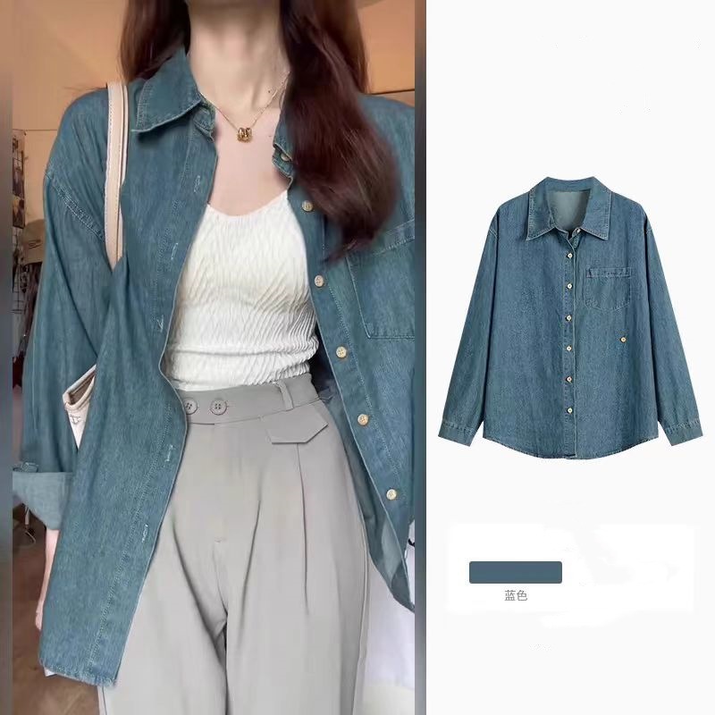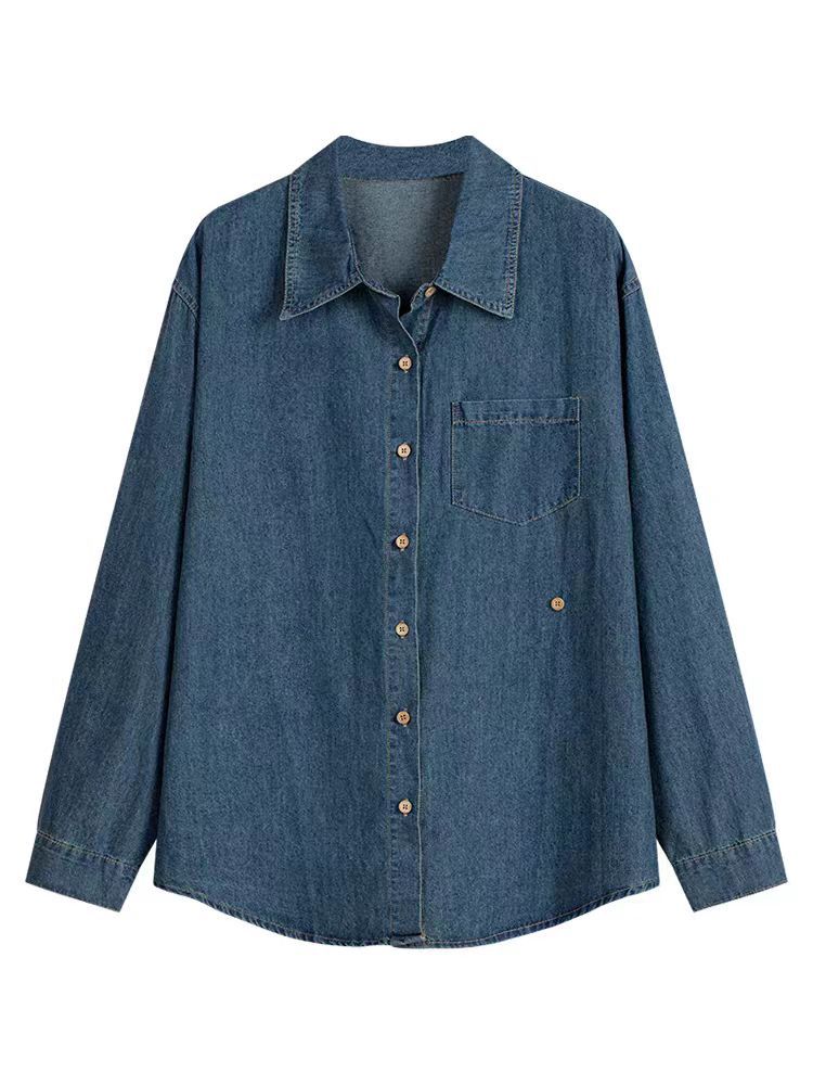 High-end Retro Elegant Loose Casual All-match Long-sleeved Polo Collar Chic Buckle Denim Shirt Women’s Trendy Top