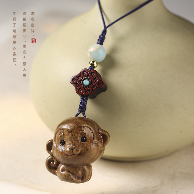 | nameOriginal | High-end sandalwood twelve zodiac monkey men and women creative artistic series unisex mobile phone chain car key pendant |