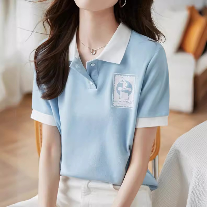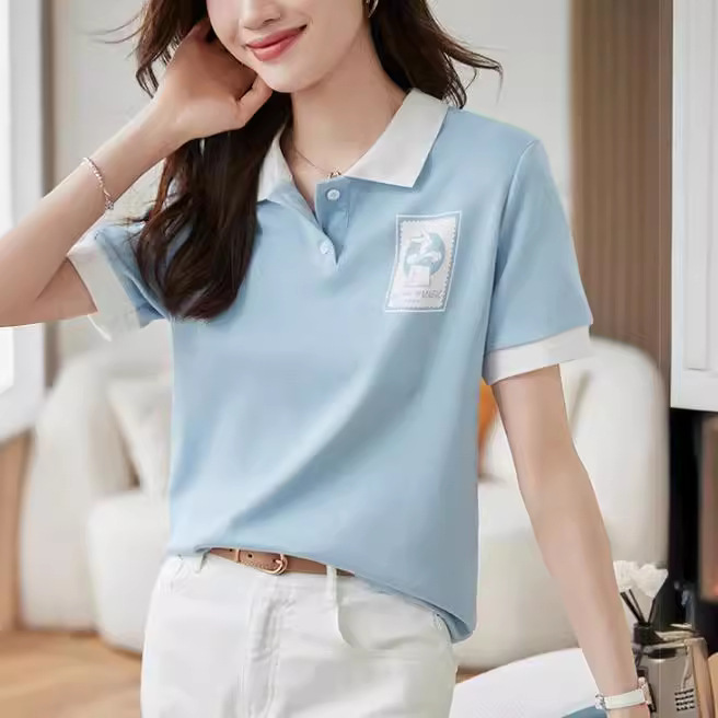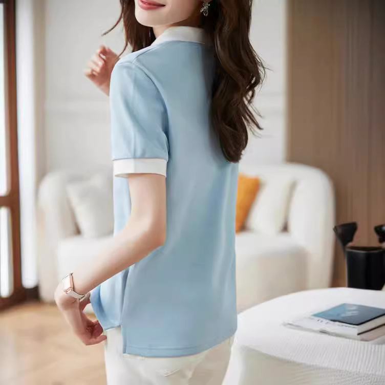 | nameOriginal | High-end Sense Contrast Color Polo Shirt 2024 Summer Korean Style Fashion College Style All-match Age-reducing Loose Short-sleeved T-shirt for Women |