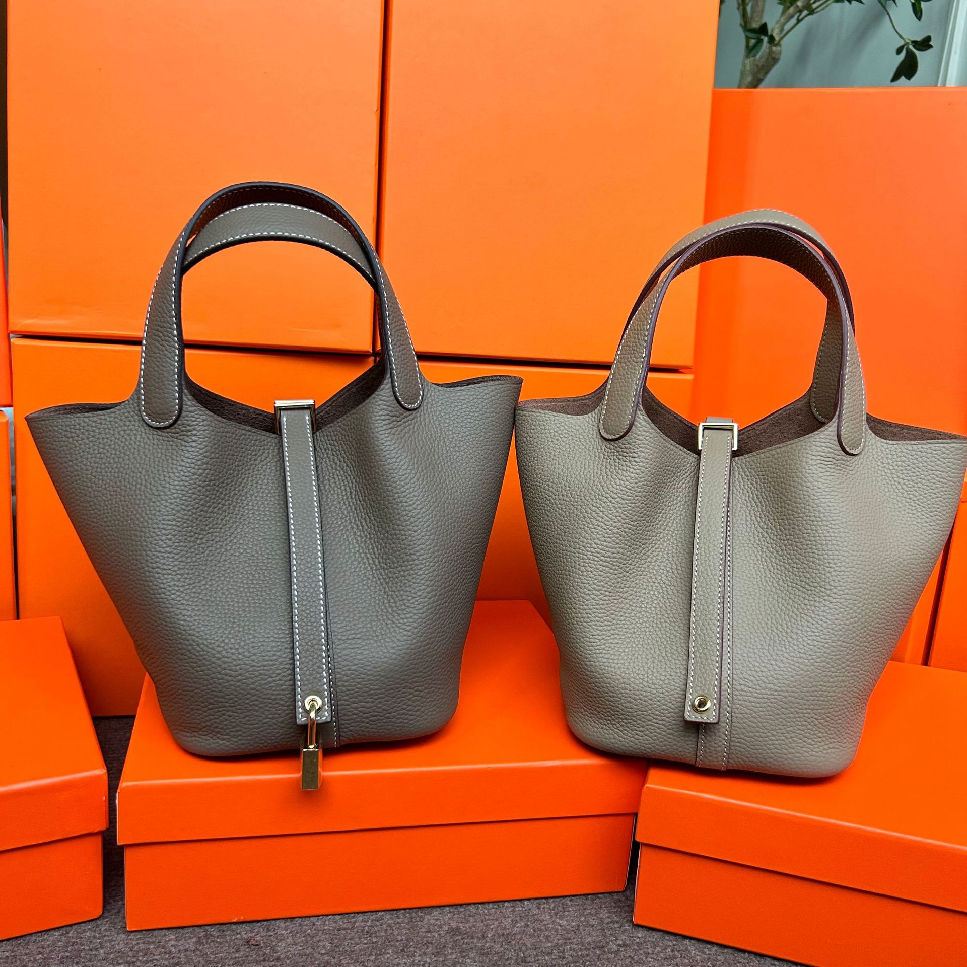 | nameOriginal | High-end Sense Food Basket Women's Bag Genuine Leather Bucket Bag 2024 New Top Layer Cowhide Hand-held Popular Bag |