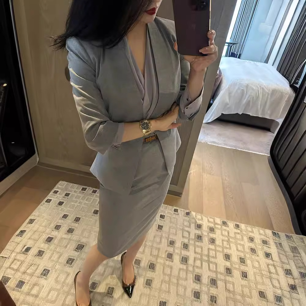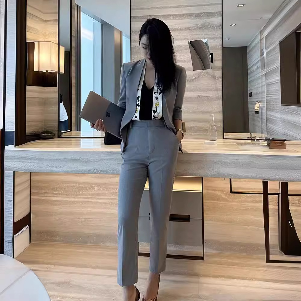 | nameOriginal | High-end Sense Slim-fit Suit suit Women's Grey Summer 2024 New Fashion Business Suit Elegant Business Wear |
