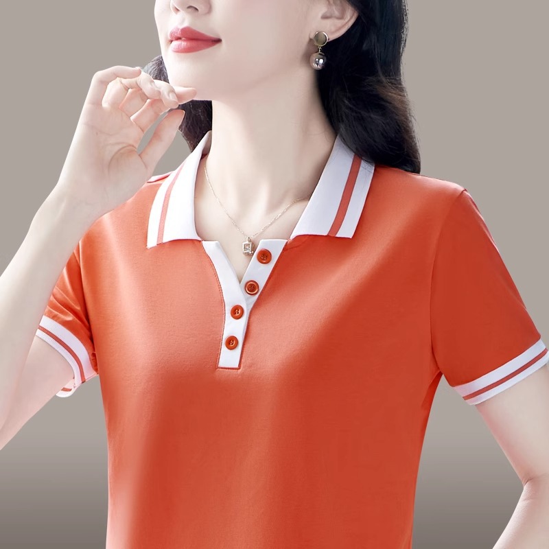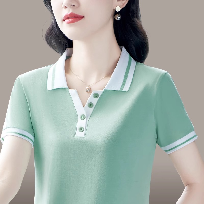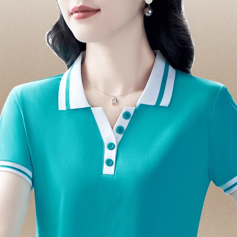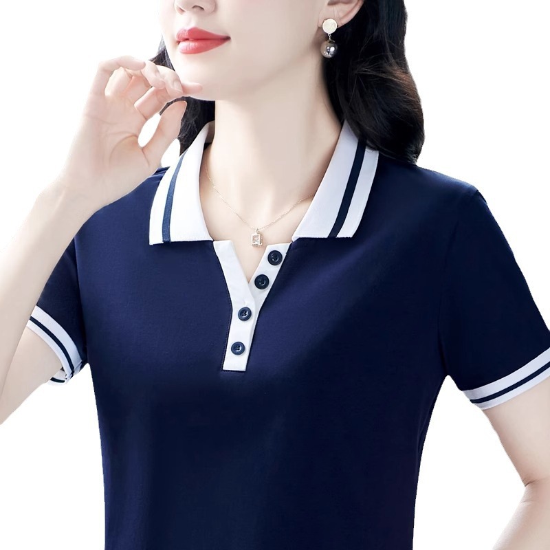 | nameOriginal | High-end Short-sleeved T-shirt Women's Summer 2024 New Fashion Mom plus size Polo Shirt Loose Striped Top Lar |