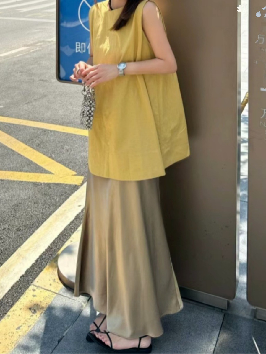 | nameOriginal | High-end Simple suit Women's Summer 2024 New Sleeveless Loose Top Fishtail Half-length Dress Two-piece Fashionable Set |