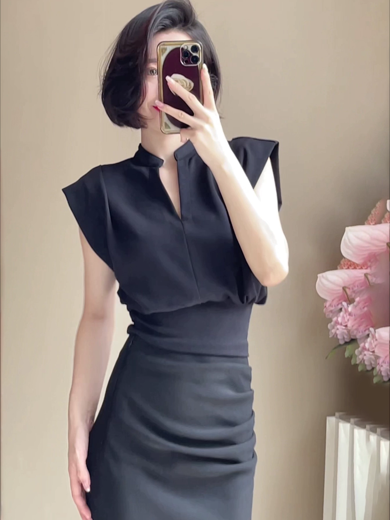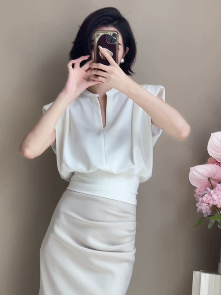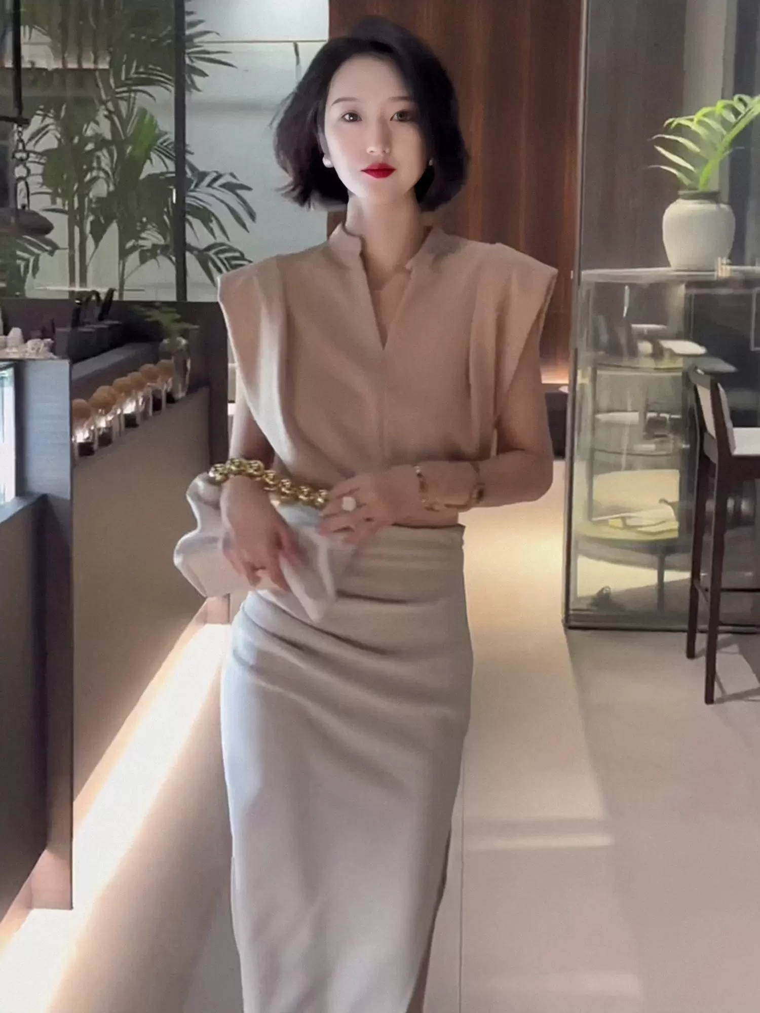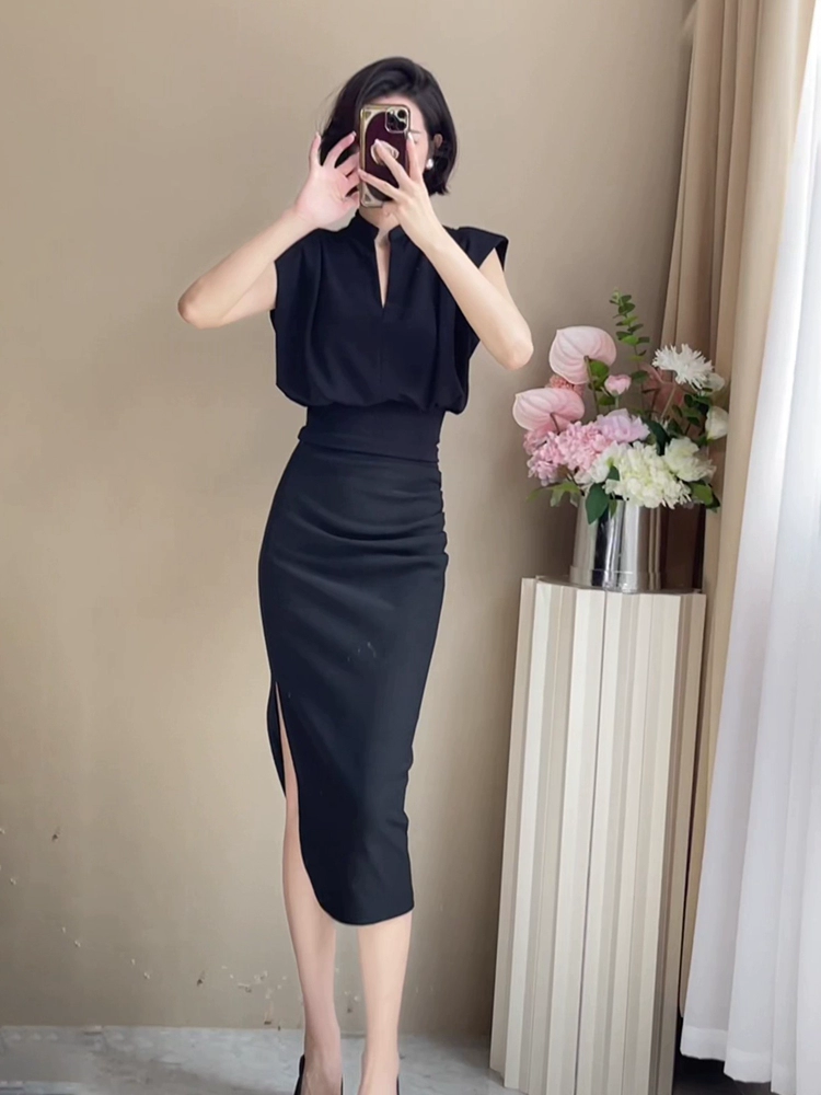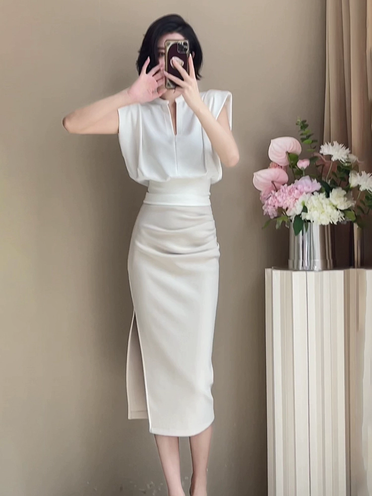 | nameOriginal | High-end skirt suit women's summer slit V-neck T-shirt |