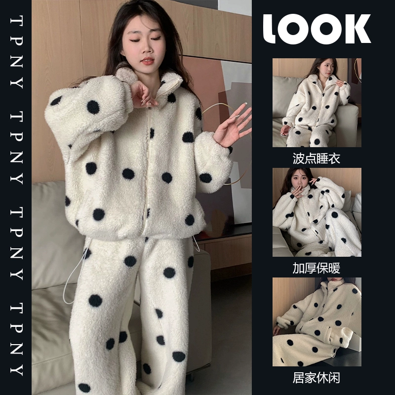 | nameOriginal | High-end soft and waxy polka-dot coral velvet pajamas for women in winter new style plus velvet and thickened plush large size home clothes set |
