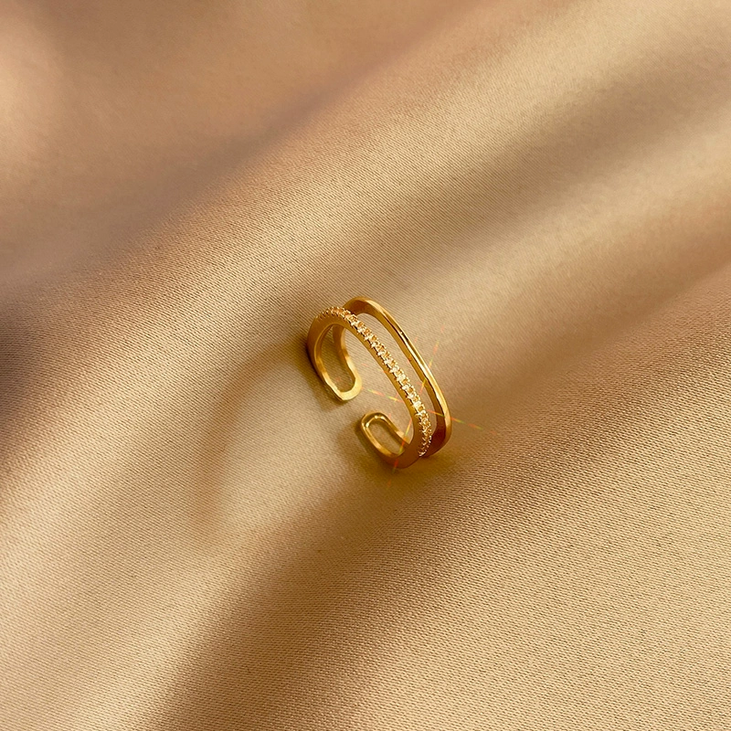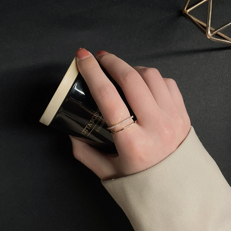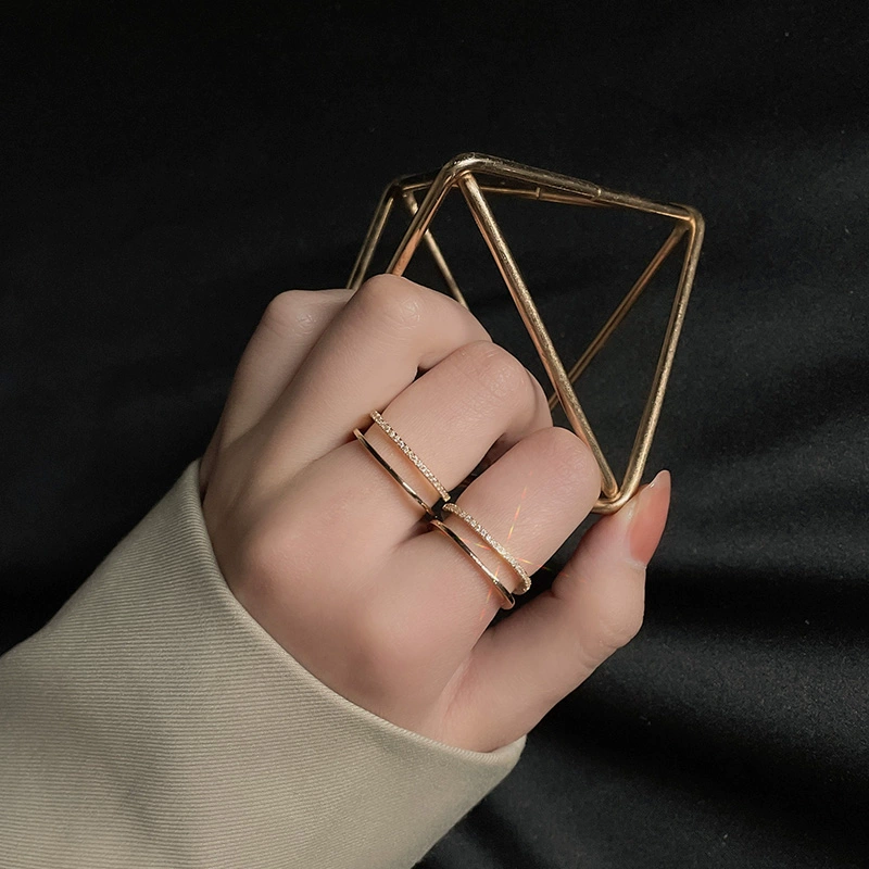 High-end square ring, small square ring, Internet celebrity fashion personality, light luxury zircon index finger ring, cool style ring opening