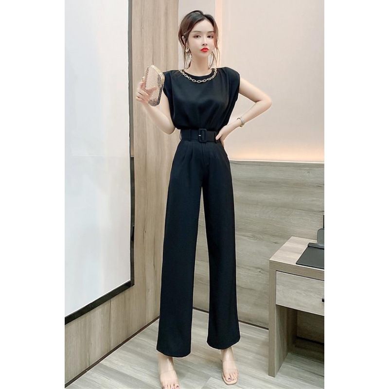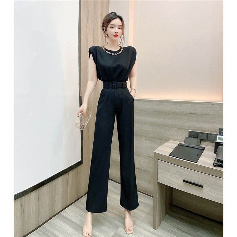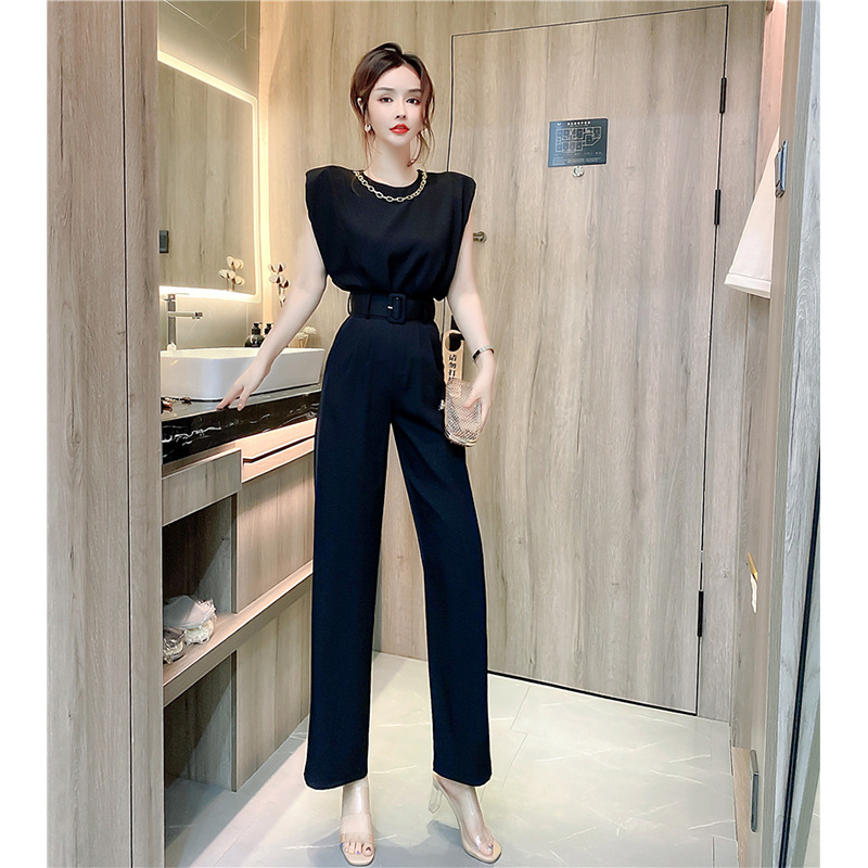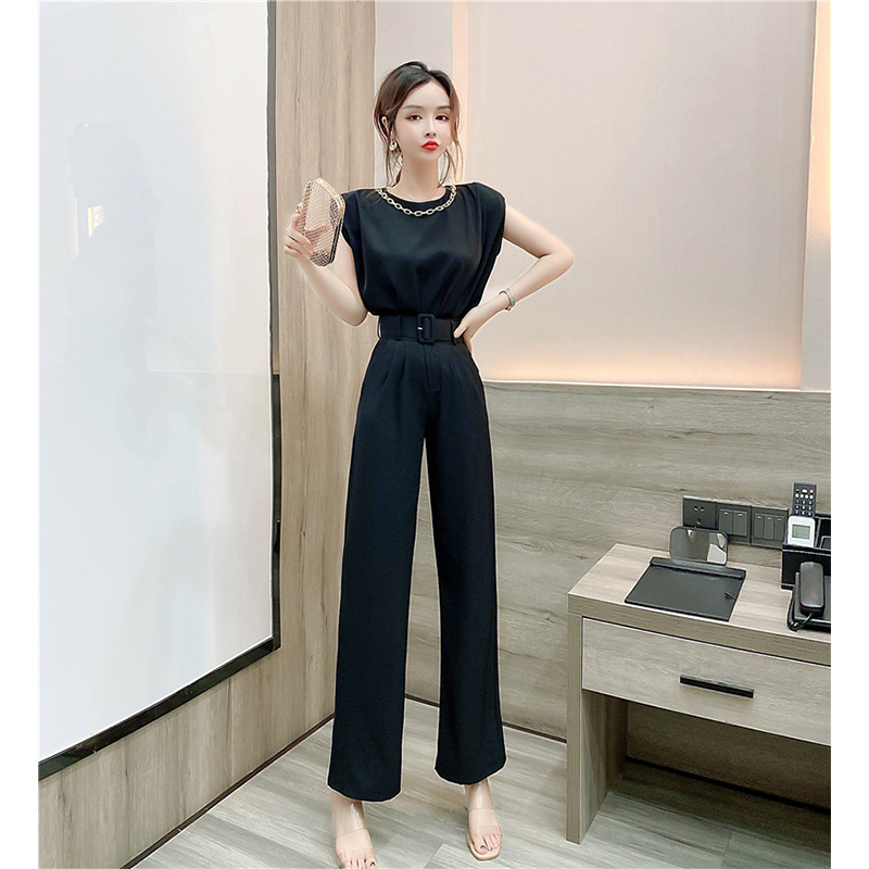 High-end Suit Women’s Elegant Sleeveless Loose Top High-waist Slimming Wide-leg Pants Two-piece Suit