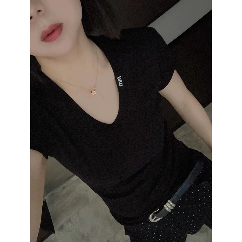 | nameOriginal | High end summer scoop neck letter slim short sleeve embroidery |