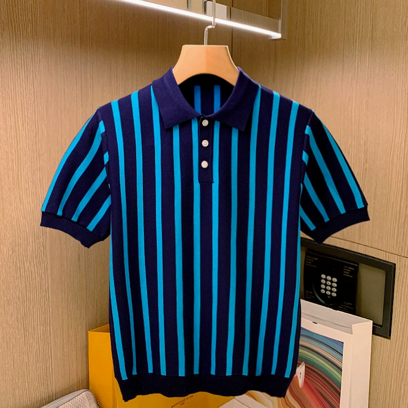 | nameOriginal | High-end summer vertical striped blue short-sleeved sweater |