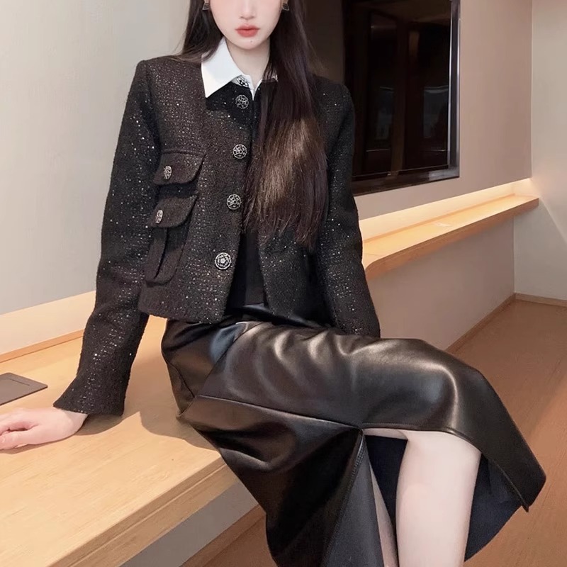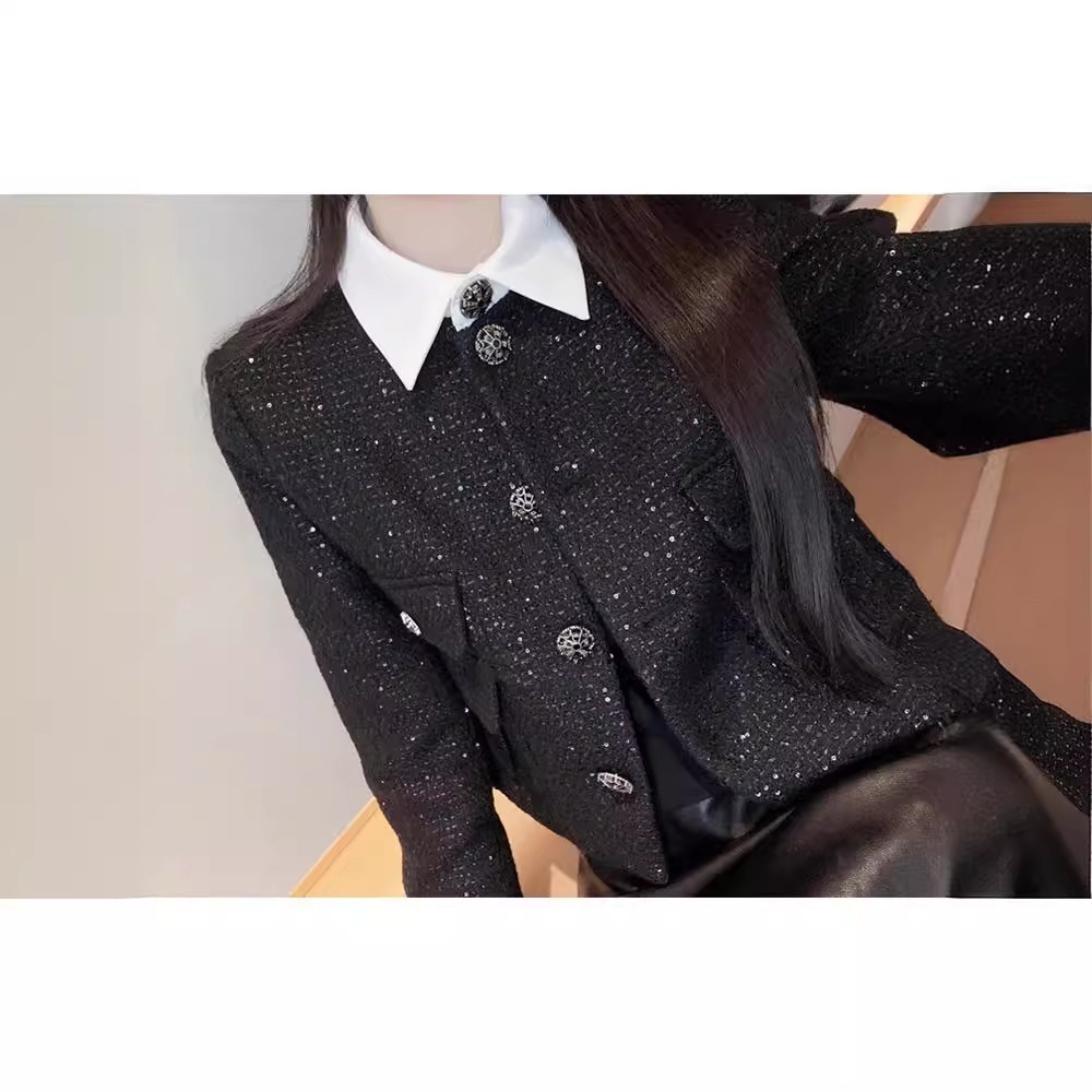 High-end super nice black gold style coat 2024 New early spring fashion small temperament short top