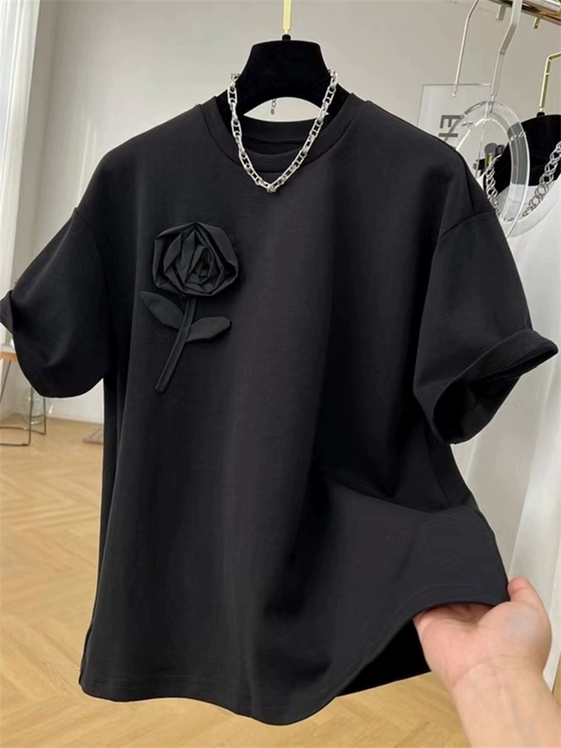 | nameOriginal | High-end three-dimensional flower-decorated short-sleeved T-shirt for women with summer design, niche loose and versatile white top |