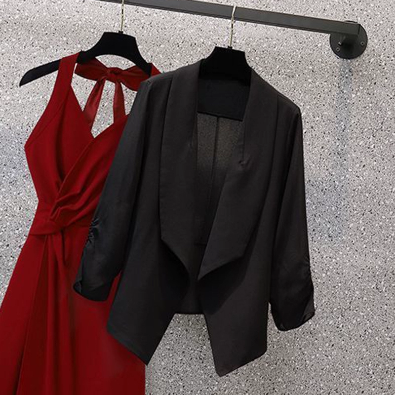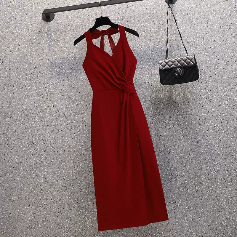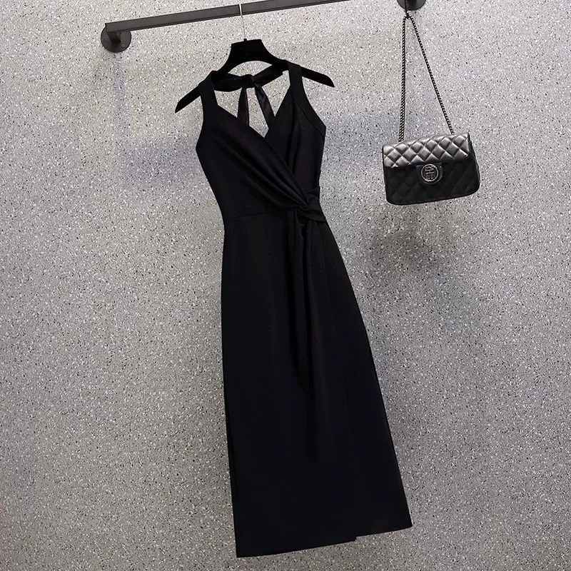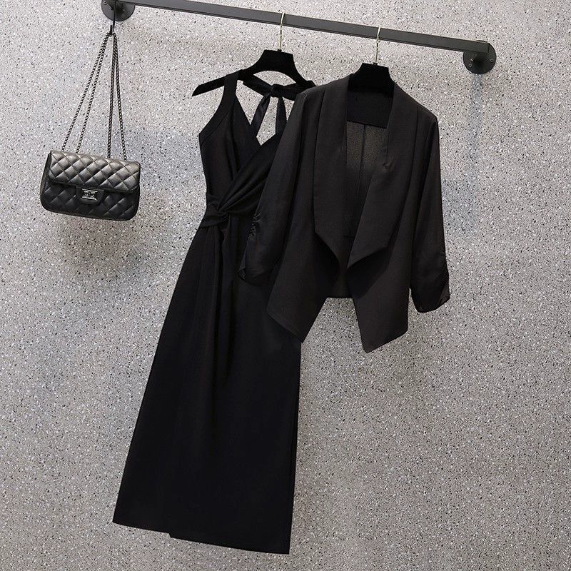 High-end v-neck spring and summer fat MM suit skirt halter neck