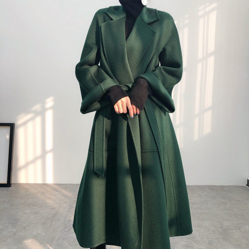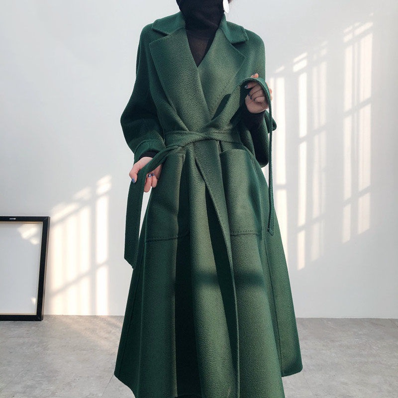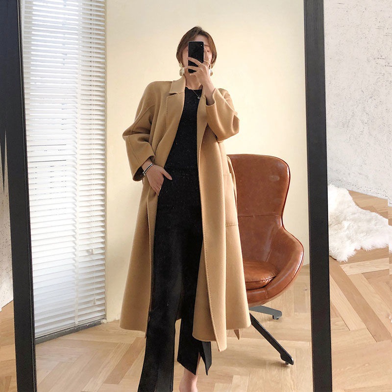 | nameOriginal | High-end water ripple double-sided cashmere coat women's 2020 autumn and winter new knee-high wool coat lace-up long coat |