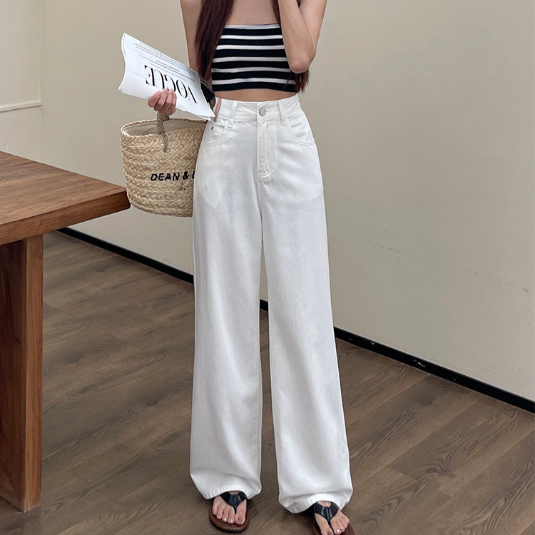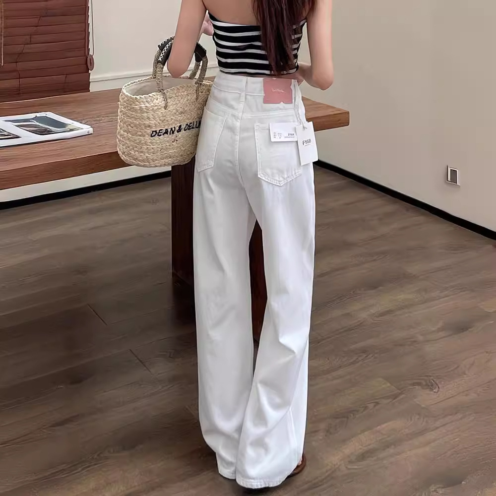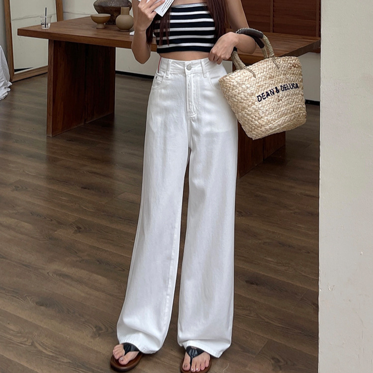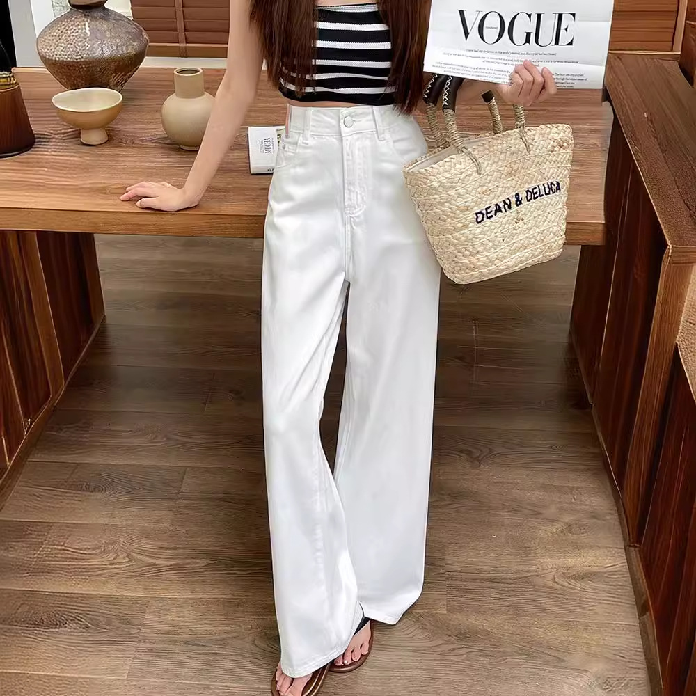 | nameOriginal | High-end White Jeans Women's Summer 2024 New Fashion Minimalist High Waist Straight Loose Wide Leg Pants Dagging Trousers |